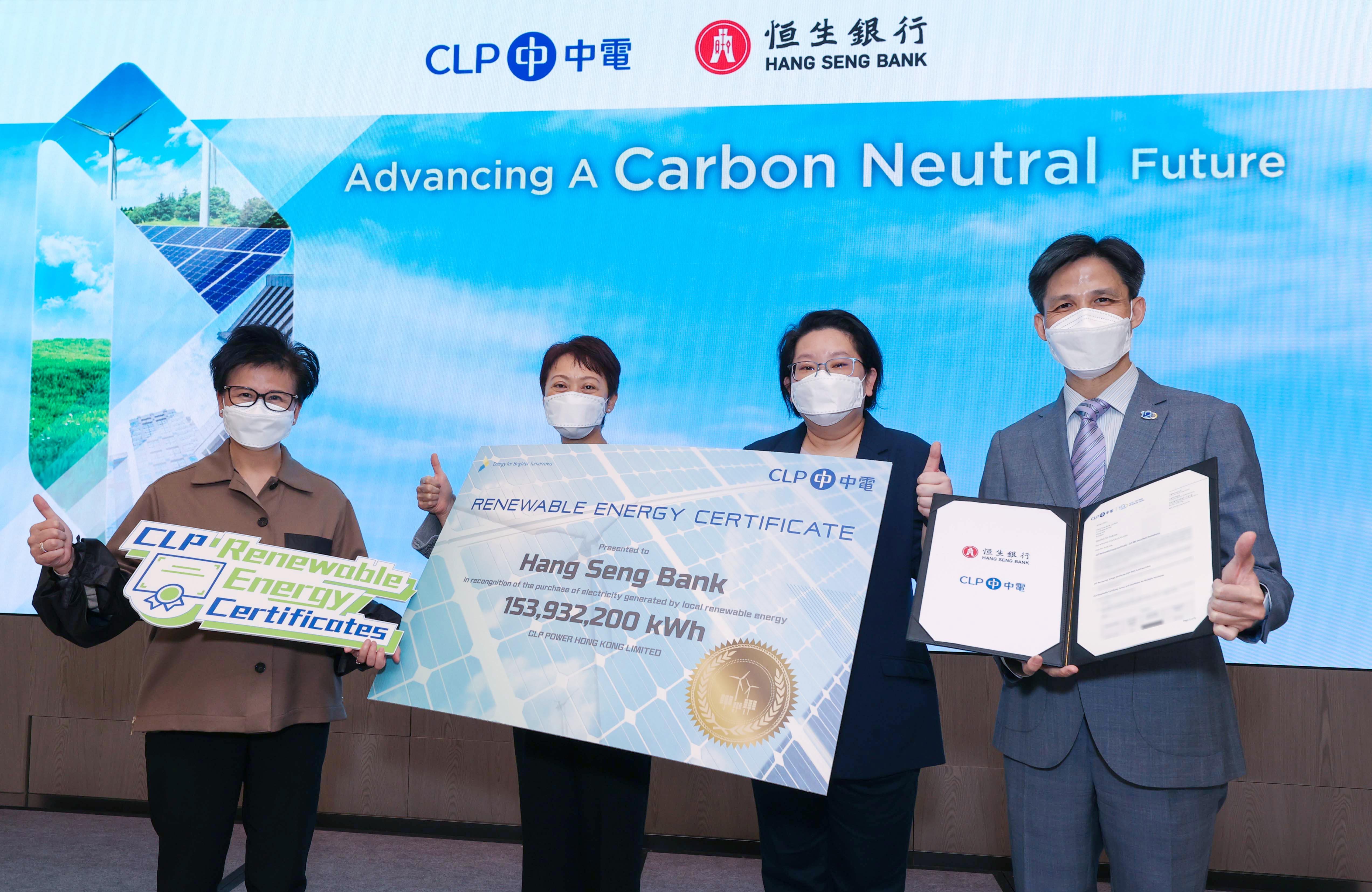中電控股, 中華電力, 恒生銀行, 可再生能源證書, 二氧化碳, 碳排放, 劉麗娜, 趙蕙雯, 碳中和