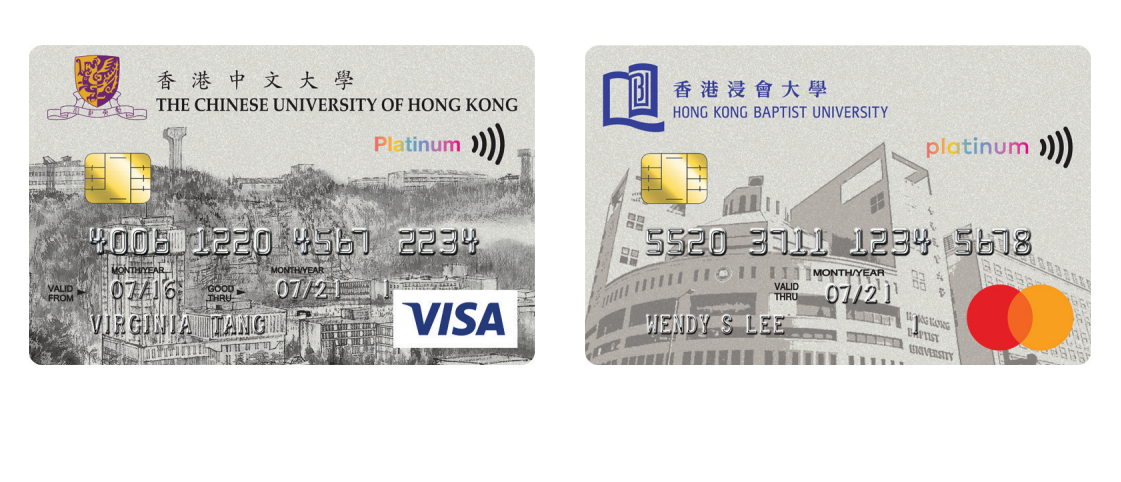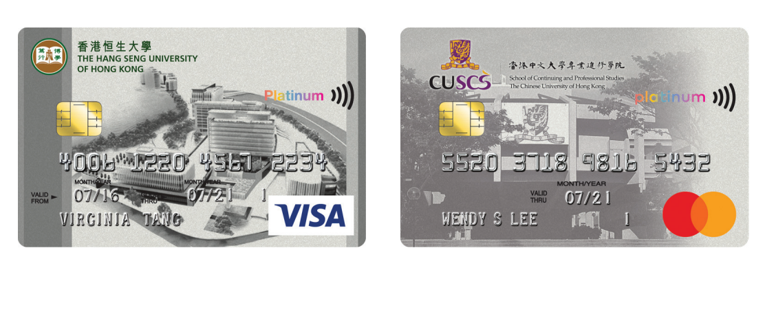 ●中文大學:可使用校園設施圖書館、游泳池、校園紀念品及4小時免費泊車 ●城市大學:校友使用圖書館85折年費、停車場、游泳池、商務印書館優惠 ●浸會大學:Pacific Coffee 享7折、校友借書證首年免費、浸大體育中心年費優惠 ●中文大學專業進修學院 信用卡:現金回贈可付學費 ●恒生大學:專享職員/學生優惠購買恒大記念品 額外功能:簽賬之部份金額將捐贈母校,用以資助大學 / 大專院校發展 |