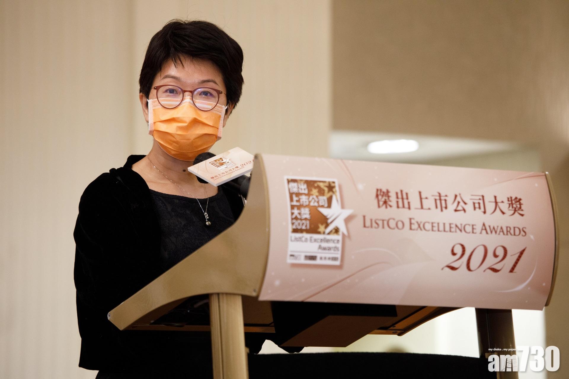 傑出上市公司大獎籌委會主席鄭燕華表示,香港經濟反彈7.8%,失業率由去年7.2%下跌至今年的4.7%,反映香港經濟逐步復甦。(蘇文傑攝)