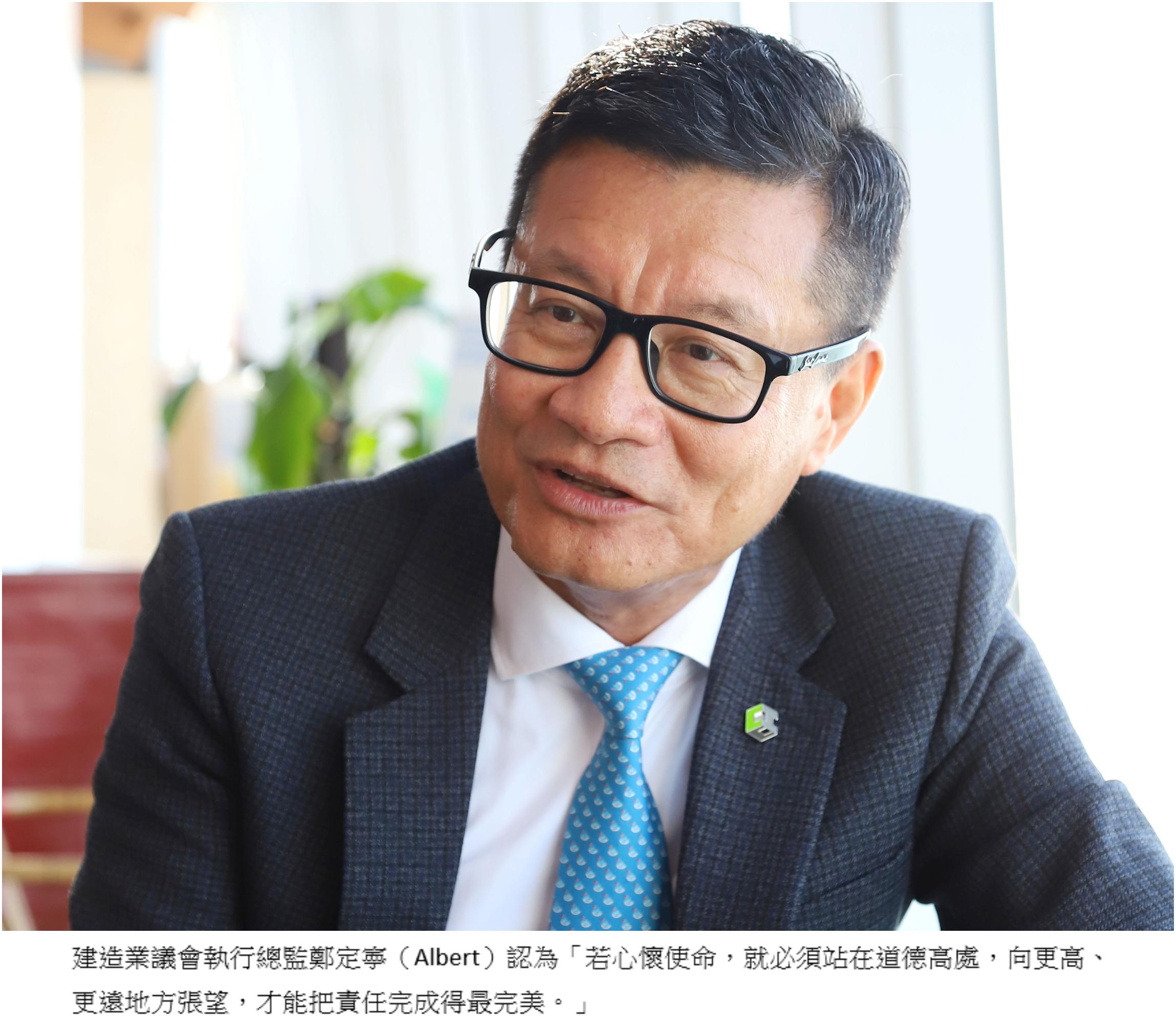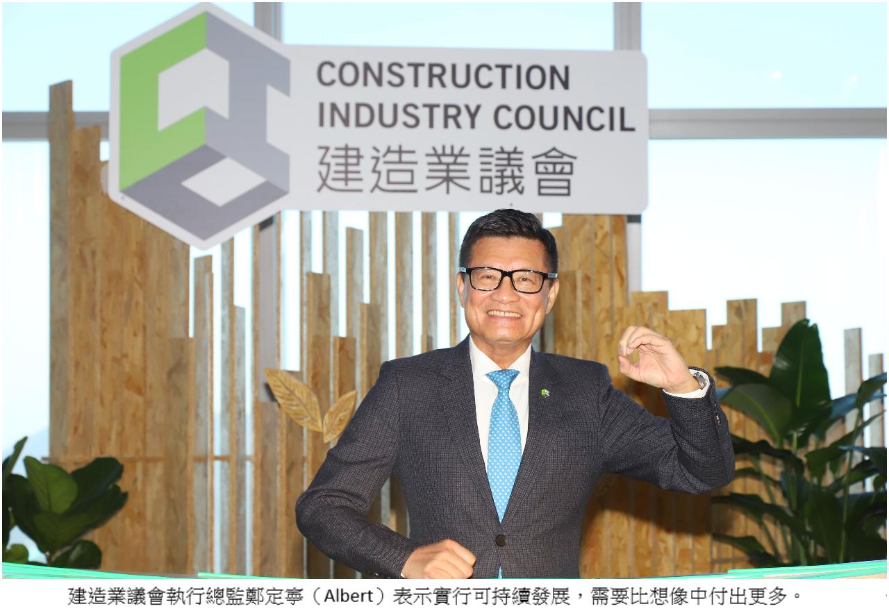 香港作為國際金融中心,亦是全球唯一匯聚中國優勢和國際優勢的城市。實行綠色零碳轉型,並發展成為國際綠色科技和綠色金融中心,是香港目前的最大目標。香港人煙稠密,建造業的碳排放是首要處理的問題,因此,香港要節能減排及推動綠色建築發展。Albert表示實行可持續發展,需要比想像中付出更多。建造業議會一直以來除了帶領業界積極推動行業革新,更提倡建造業界加入可持續發展計劃,讓建築工程達至數碼化,節省更多的人力,提高工程的準確性,改善建造業的質素。