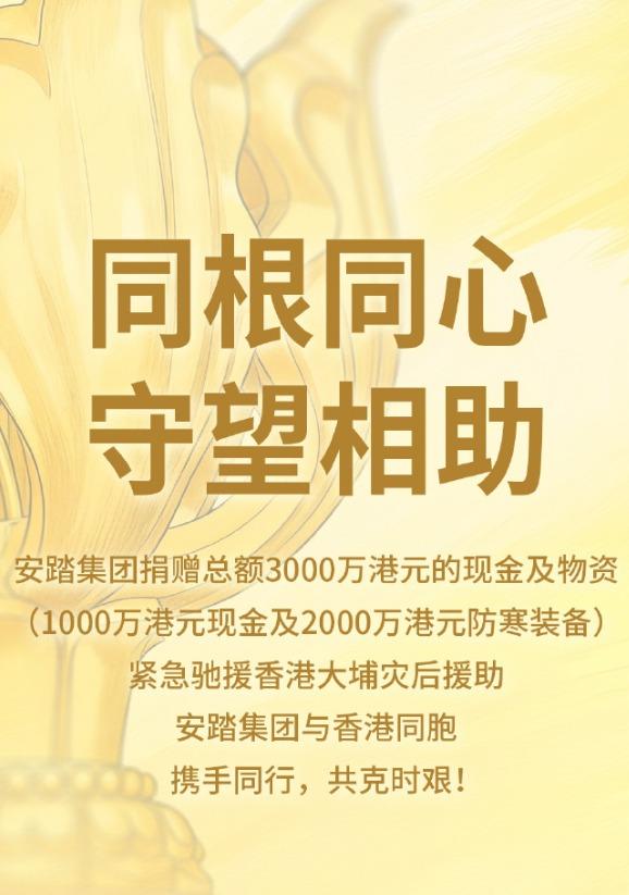 安踏集團(2020)宣布,捐贈總額3,000萬元的現金及防寒裝備,包括1,000萬港元現金及2,000萬港元防寒裝備,用於受災同胞的緊急安置及過渡期基本生活保障所需。安踏集團表示,將持續關注災情進展,助力受災同胞早日渡過難關。