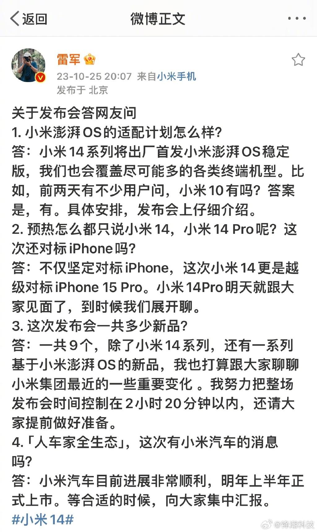 雷軍:小米汽車進展順利