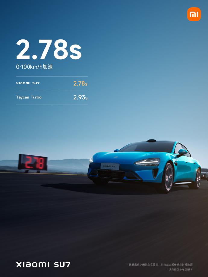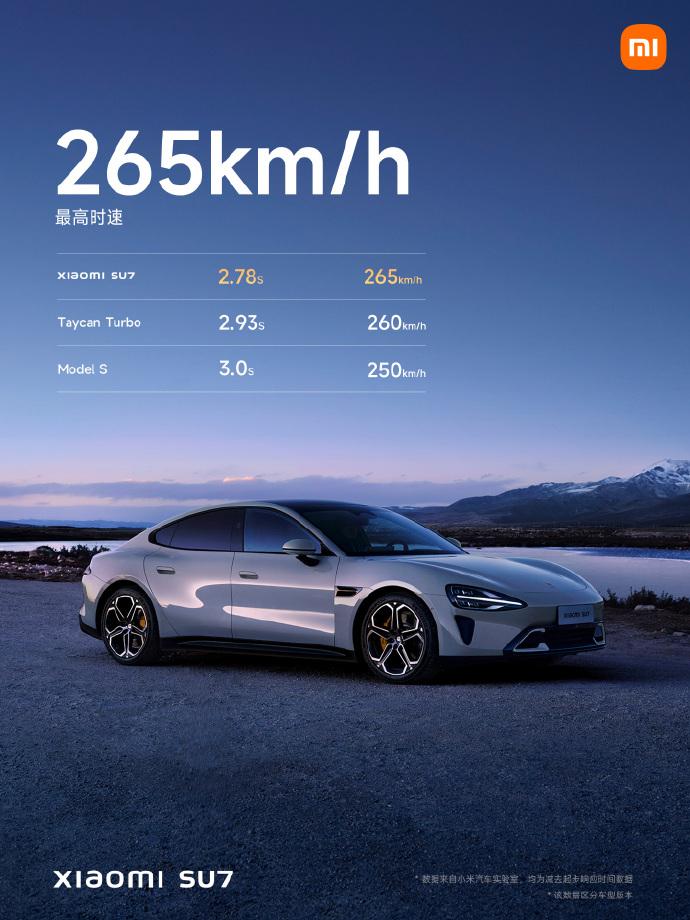 發布會上,小米亦公布有關更多「SU7」的資料,雷軍指,該款號稱車的外型是「對標保時捷、Tesla」。
