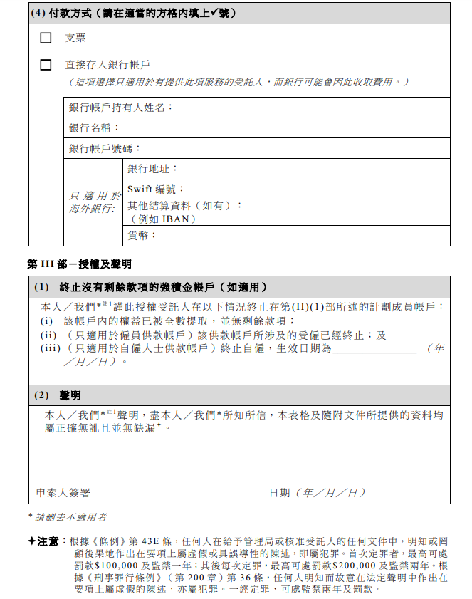 計劃成員如欲提取強積金,應填妥以下兩份文份連同所需證明文件交予相關受託人