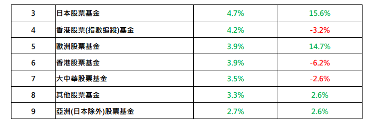 數據顯示,上半年的基金表現不一,當中香港和大中華股票基金跌幅最大,錄得負回報;美國及日本股票基金則表現亮麗,為年初至今表現最好的兩項股票基金指數;保守基金在市況波動下仍然保持穩定錄得正回報。