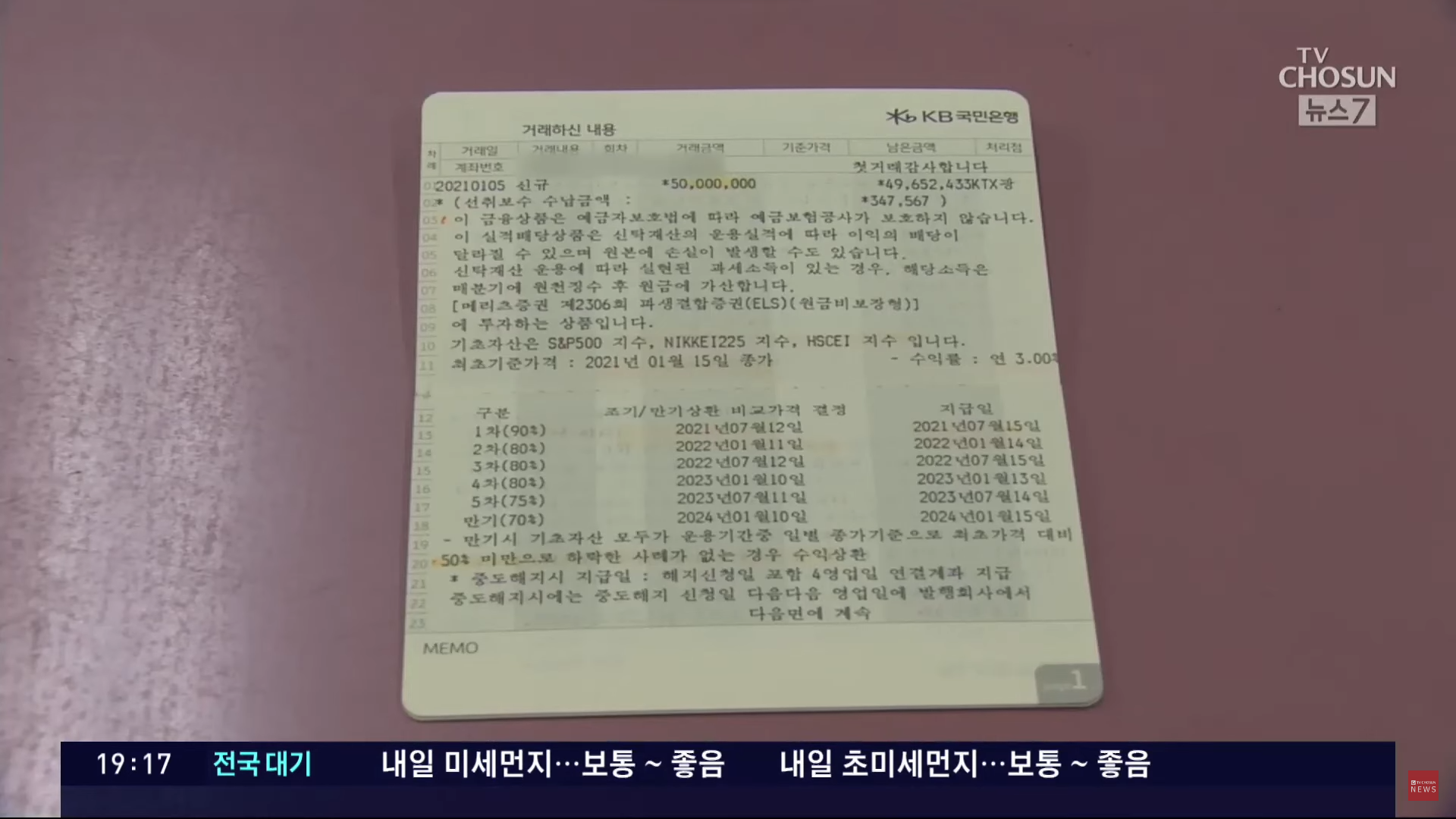 據南韓媒體報道,在1月12日到期的ELS票據(29447號ELS),共錄得1,067韓圜(折合6.2億港元)的虧損,一星期後到期票據,損失率達56.05%,虧損急增至2,296億韓圜(折合13.4億港元),意味不少散戶投資3年本金慘蝕逾半。至於「1528號ELS票據」,損失率更高於51.72%,兩款產品均有投資於香港恒生國指。
