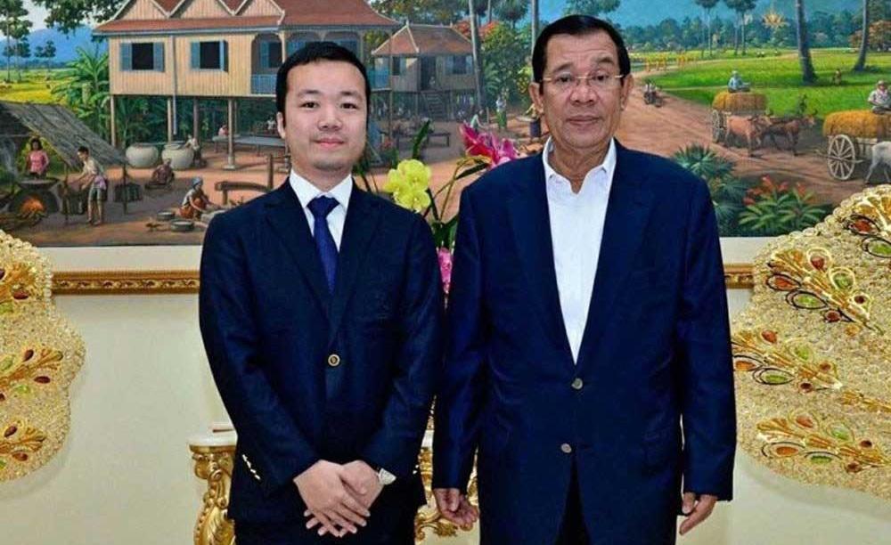 柬埔寨詐騙集團首腦陳志(左),近日被美英制裁起訴。圖為他2020年獲柬埔寨授予「公爵」封號,與時任首相洪森合照。(互聯網)