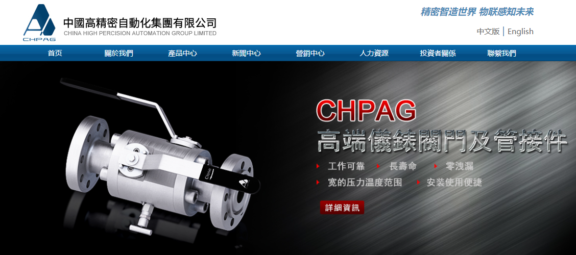 中國高精密自動化於2012年8月22日起停牌至今;圖為其網站。