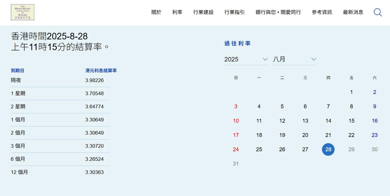 【8月28日更新】港元拆息持續全線上升,其中與樓按相關的1個月期HIBOR連續3個交易日上漲,今日上升7.34點子,報3.30649厘,創自5月6日以來新高。目前市場普遍「H按」為H+1.3厘,實際按息已升至4.6厘,高於P按鎖息上限3.5厘。