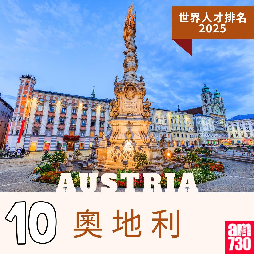 世界人才排名2025|(am730製圖) 世界人才排名2025|10.奧地利(am730製圖) 世界人才排名2025|9.阿聯酋(am730製圖) 世界人才排名2025|8.丹麥(am730製圖) 世界人才排名2025|7.新加坡(am730製圖) 世界人才排名2025|6.瑞典(am730製圖) 世界人才排名2025|5.荷蘭(am730製圖) 世界人才排名2025|4.香港(am730製圖) 世界人才排名2025|3.冰島(am730製圖) 世界人才排名2025|2.盧森堡(am730製圖) 世界人才排名2025|1.瑞士(am730製圖)