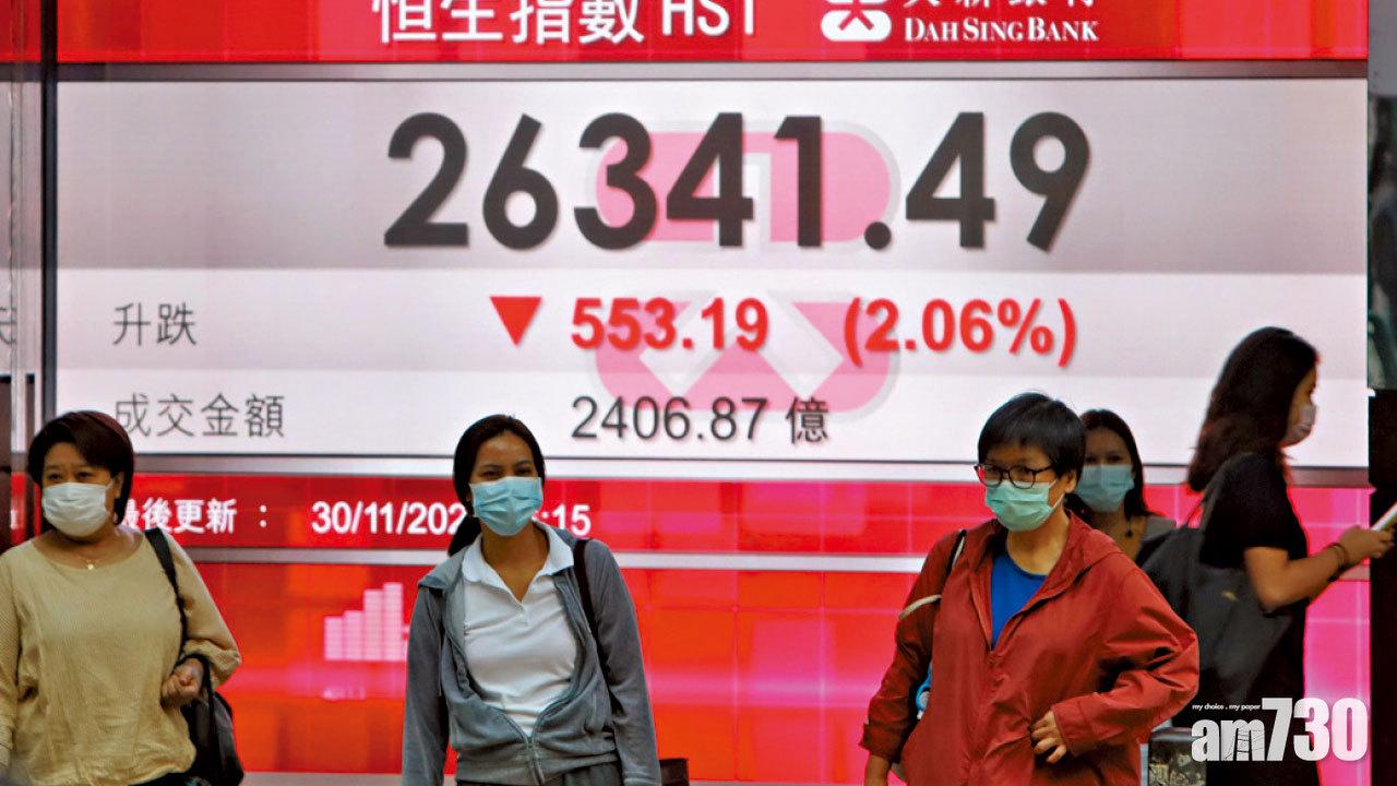 港股期指結算後即大走樣,昨稍低開41點的恒生指數午後愈跌愈急,最多大瀉572點,收市報26,341點,走低553點或2.1%,為11月初後首次跌穿10天移動平均線(昨處26,556點),拖累全月升幅大縮水至9.3%或2,234點,但仍為2018年1月後近3年最佳。新舊經濟股上月命運大逆轉,阿里巴巴(9988)及騰訊控股(700)成藍籌輸家,分別跌11%及4.7%,石藥集團(1093)亦挫7%;相反,吉利汽車(175)及滙豐控股(005)分別全月狂飆35%及29%,成大贏家。