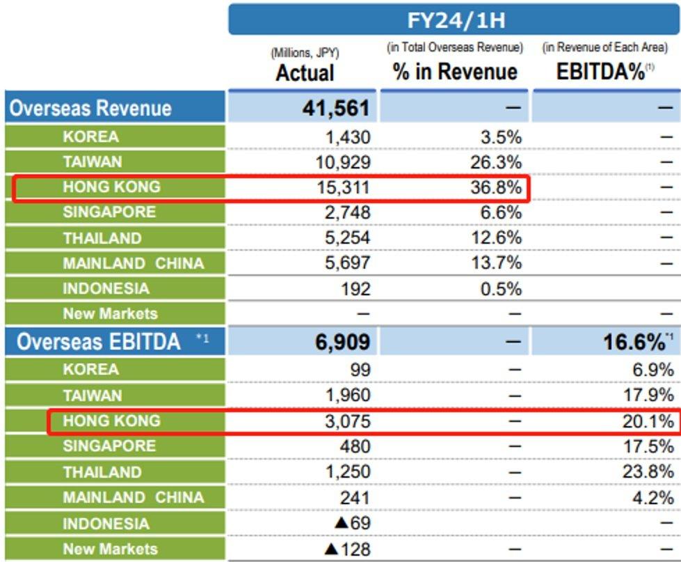 香港人對於日式食肆的鍾愛一直強烈,但通關後高端價位的OMAKASE,鐵板燒等明顯受壓。不過對比之下中低價格的日式食肆表現依然強勁。以壽司郎為例,其上市公司Food & Life Companies (3563.JP) 剛公佈上半財年業績中,香港佔總收入及EBITDA達37%及44%。期內亦於香港新增3家店至28家 (對比台灣及中國大陸地區各40家),未來亦會繼續開店。
