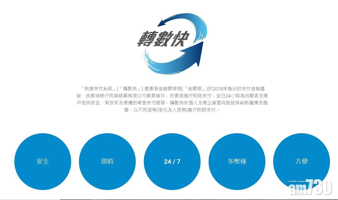 轉數快全稱是「快速支付系統」,是香港的電子支付平台之一,由香港金管局,在2018年9月推出,平台接通本港多間銀行及儲值支付營運商,可讓個人或機構,於不同支付服務提供商之間直接進行實時轉帳。
