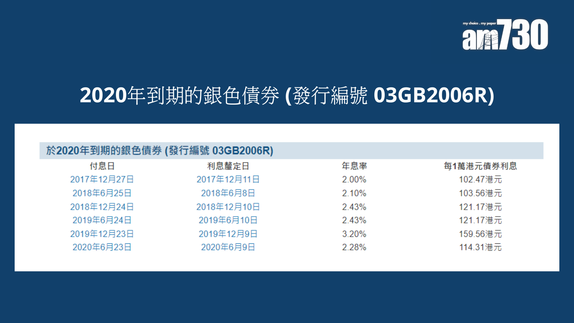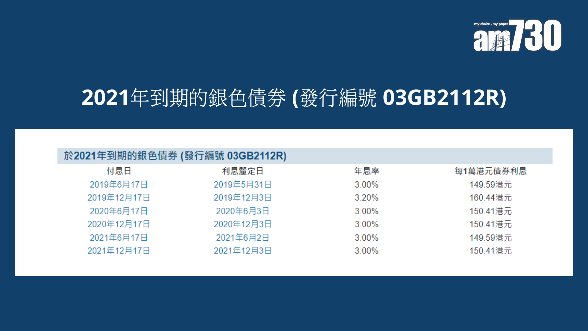 對上一批第七批銀色債券(2022年)的保證息率為4厘。最新一批銀色債券(2023年)保證息率為5厘,每半年派息一次。