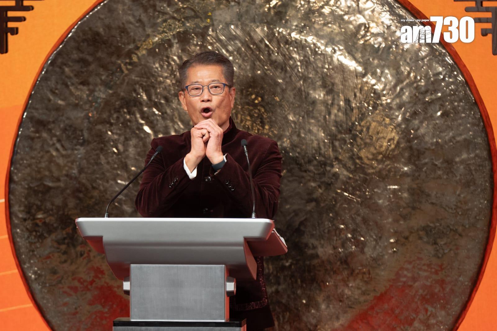 陳茂波致辭表示,香港正值新發展階段,今年的基調為穩中求進,希望本港可以穩步快進,地緣政局以至全球供應鏈的佈局,變化讓不少內地和海外企業,都感到有迫切需要開拓亞洲市場和設置地區總部,新的形勢讓香港「超級聯繫人」角色有新的發展,故對龍年有審慎樂觀預期。
