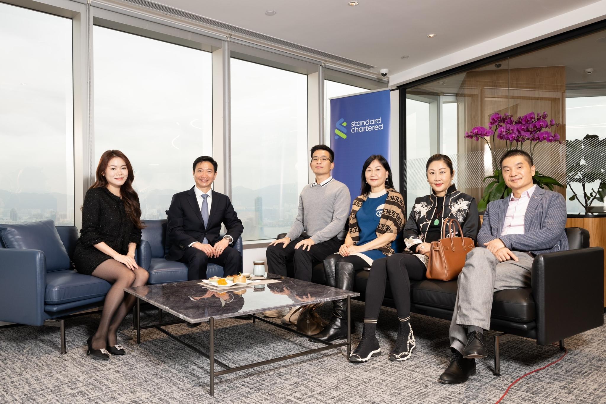 渣打大灣區行政總裁林遠棟(左二)指,去年第四季,跨境客戶新開戶數目按季增長近兩成半。