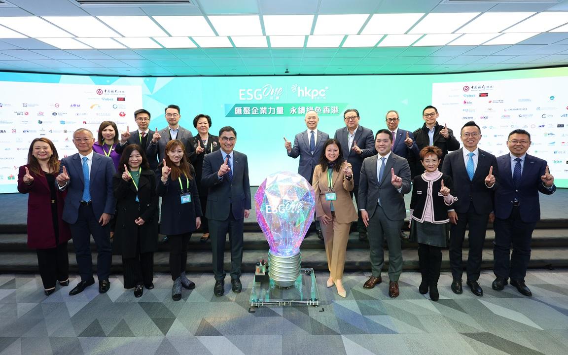 於《智瞻2024》上,一眾本地商會領袖、中小企貿易協會代表及行業伙伴一同參與「ESG一站通」啟動典禮,見證「ESG一站通」平台正式啟動上線。