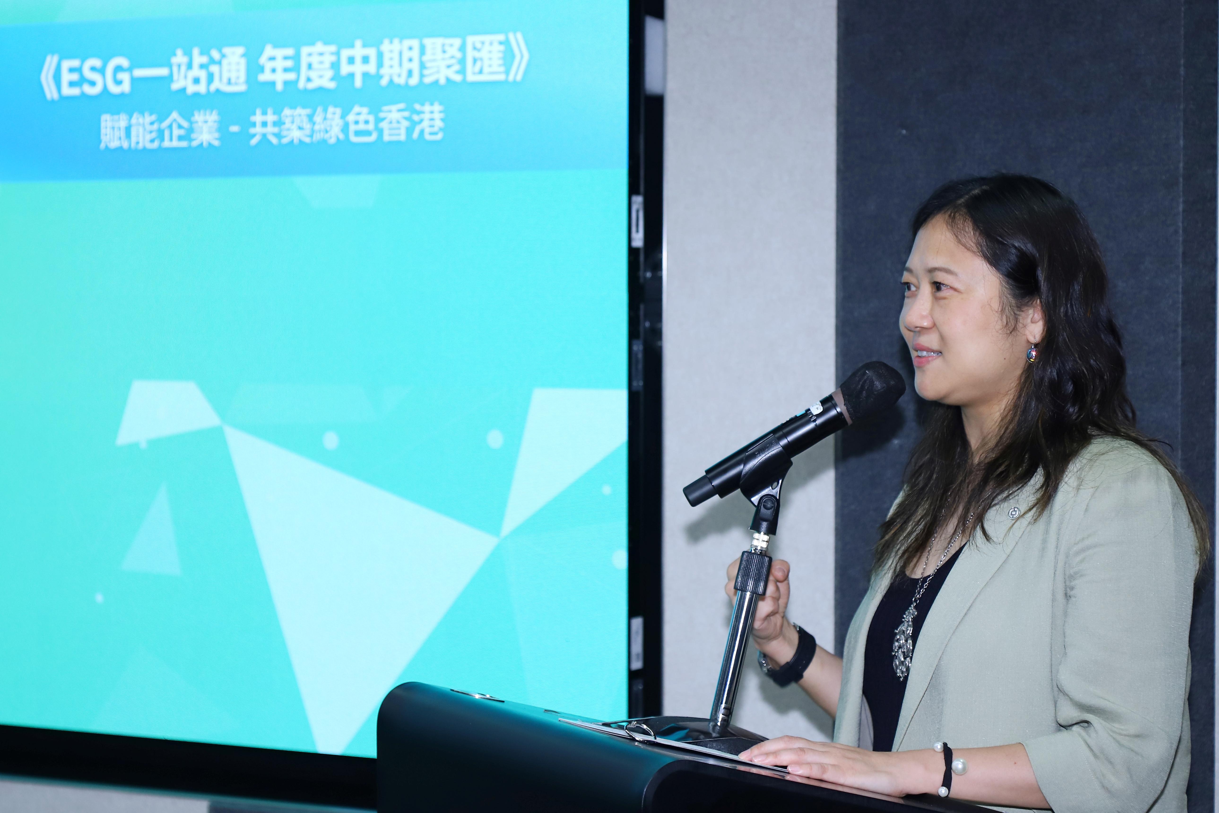 生產力局首席市場總監馮嘉寶女士公布「ESG 一站通」2024中期重點回顧及發布績效咭結果。