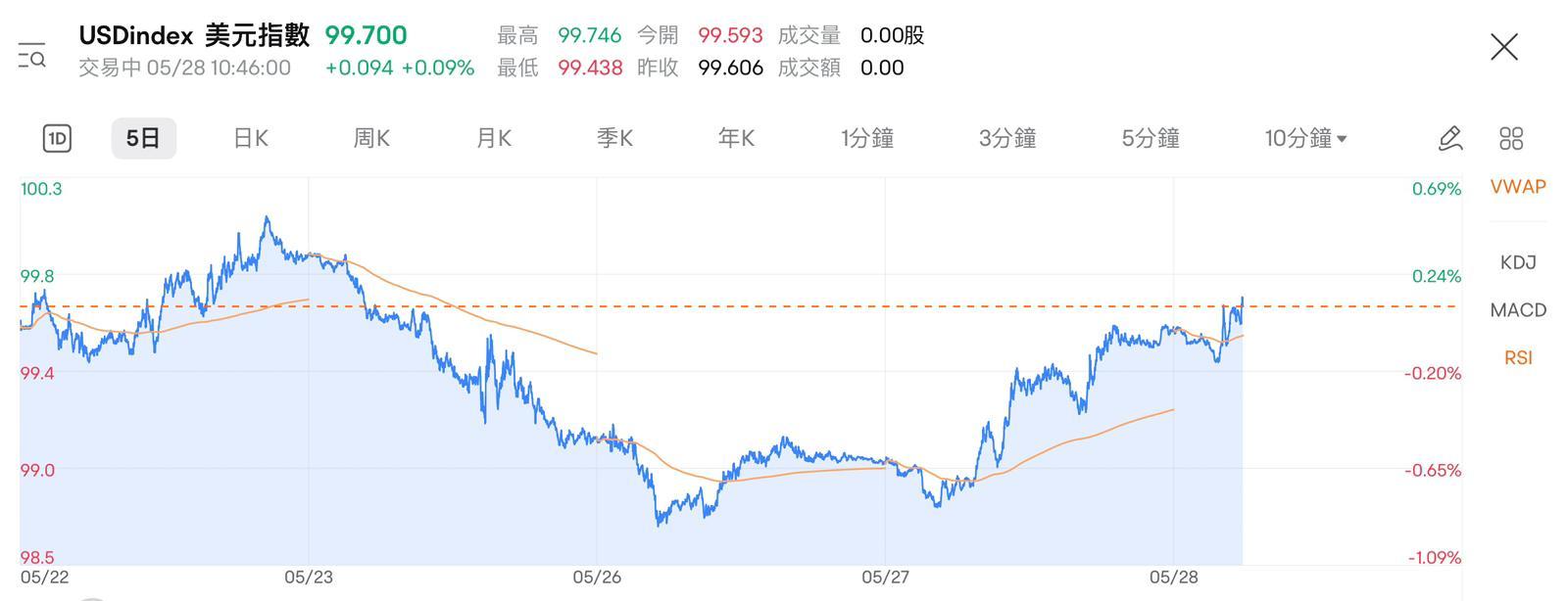 債市方面,近期承壓的美債同步反彈,各年期收益率普遍回落,其中10年期美債收益率下跌18.7個基點至4.442%,20年期收益率亦從5.165%的高點回落至4.944%。匯市部分,美元指數一改近期弱勢,反彈逾0.6%,報99.6美元。