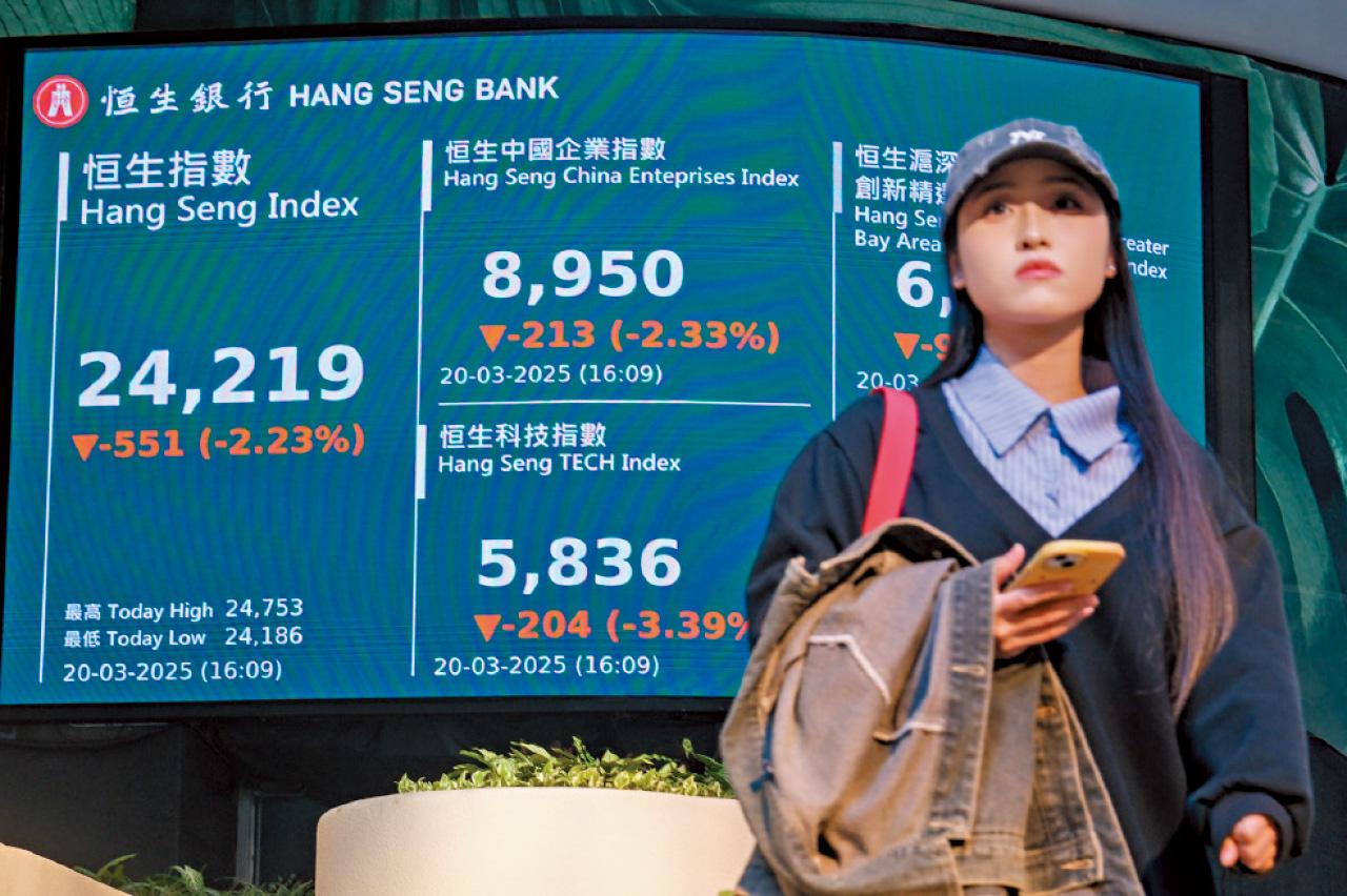 恒生指數昨終止4連升。(中新社)