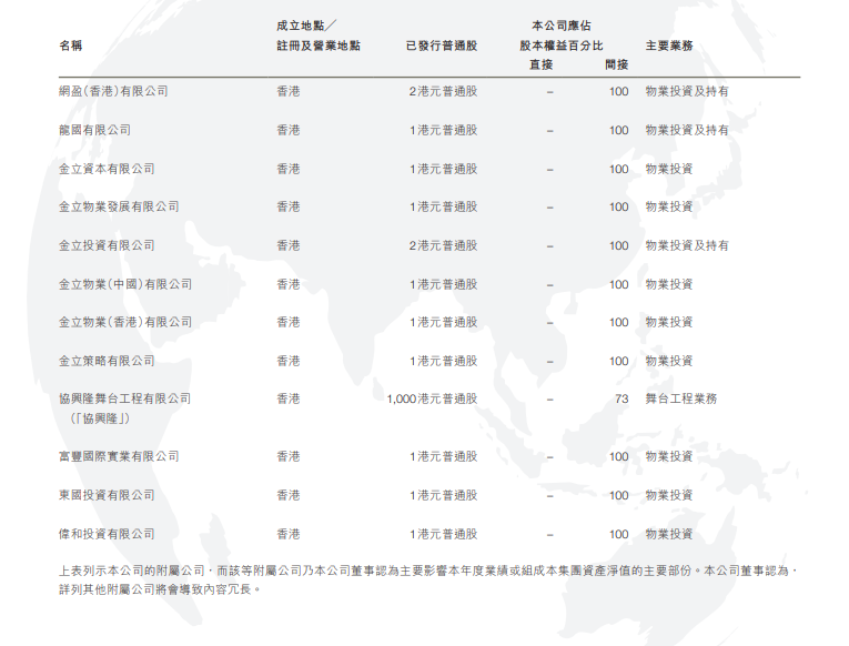 據資料顯示,未來文化娛樂持有72%「興明亞洲」股權,該公司主要提供舞台音響及燈光業務服務;至於未來文化娛樂原持有73%股份的「協興隆」則提供舞台工程業務服務。