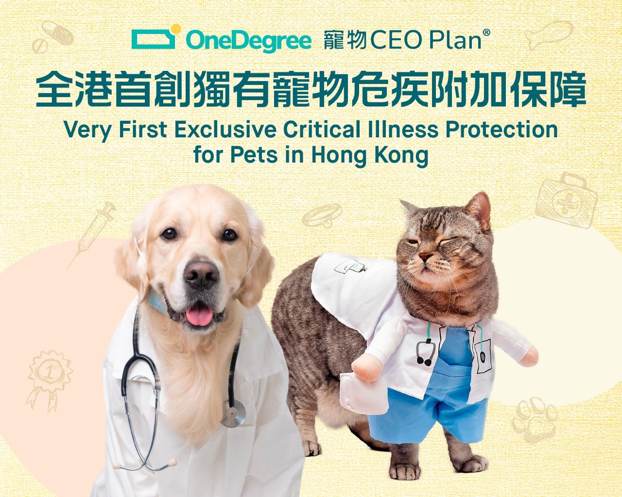 OneDegree今年5月升級其全港唯一寵物CEO Plan,將尊寵計劃的年度保額上限提升至10萬元。