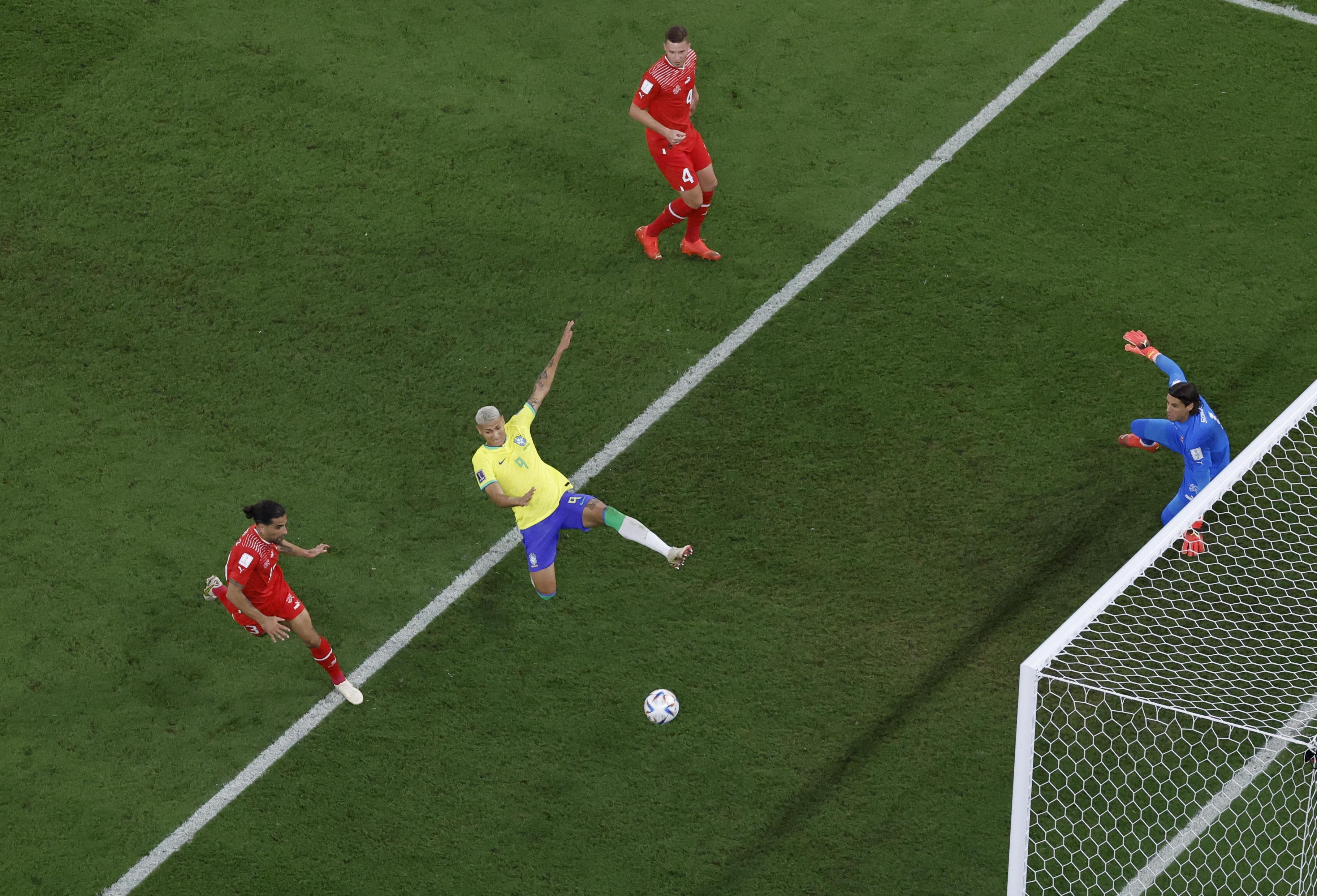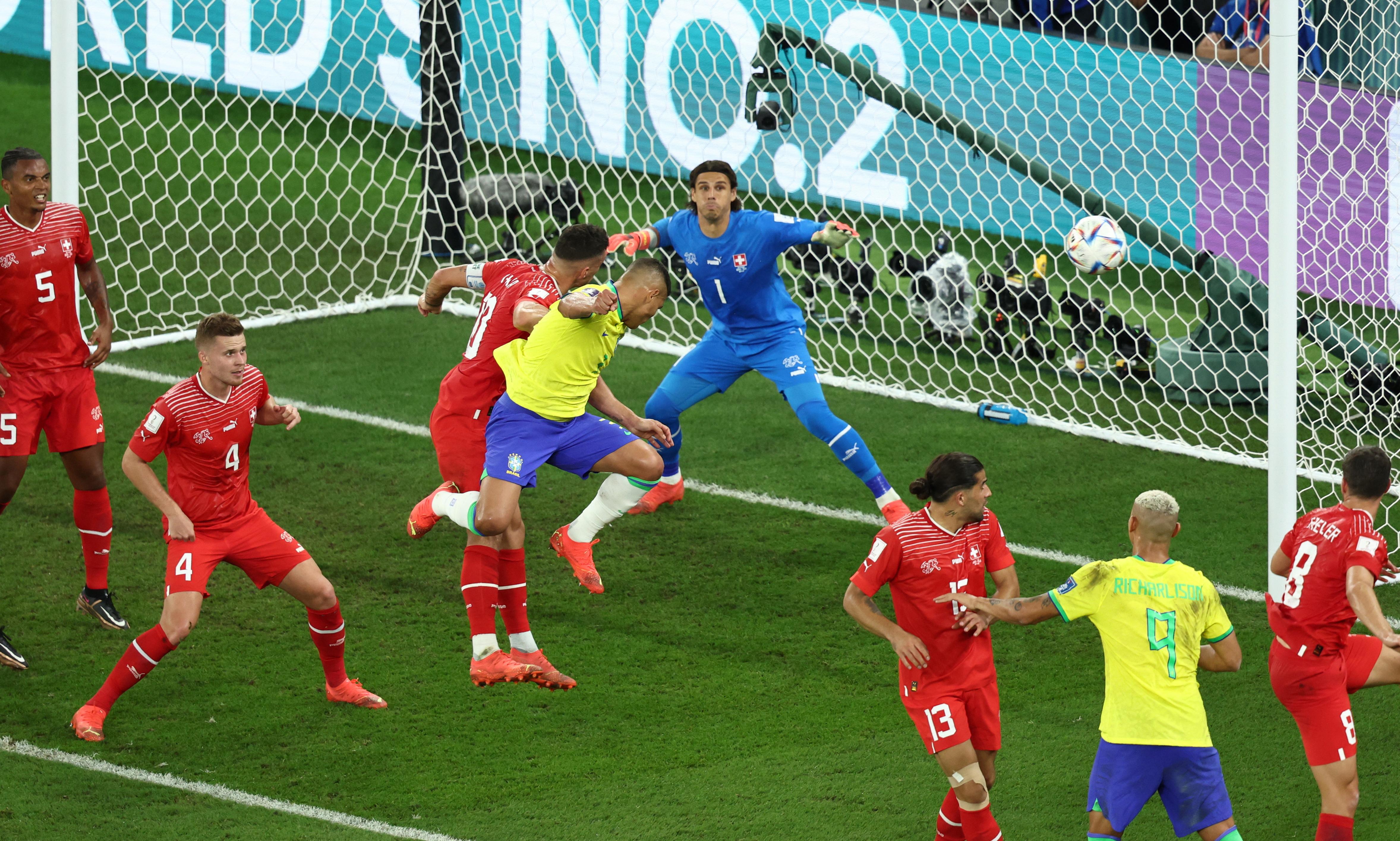換邊後巴西繼續狂攻,李察利臣(Richarlison)於禁區內起腳,差點打開紀錄。戰至64分鐘,雲尼斯奧斯一度接應卡斯米路的直線射入,惟VAR指有份參與進攻的李察利臣越位在先,入球無效。巴西在比賽中後段再換入安東尼馬菲奧斯(Antony)、加比爾捷西斯(Gabriel Jesus)及洛迪高高斯(Rodrygo)放手一博,戰至83分鐘,卡斯米路接應洛迪高的傳送,禁區內大腳大抽遠柱掛網而入,打破悶局。補時階段,洛迪高有機會再下一城,惟被對方守衛封走。最終巴西以1:0小勝瑞士,2戰得6分,繼法國後成為第2支打入16強的球隊。