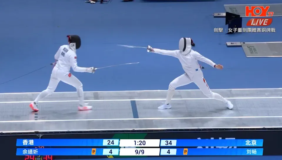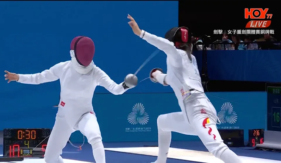 全運會|香港女子重劍團體賽銅牌戰負北京 男子佩劍團體賽第6(開電視截圖)