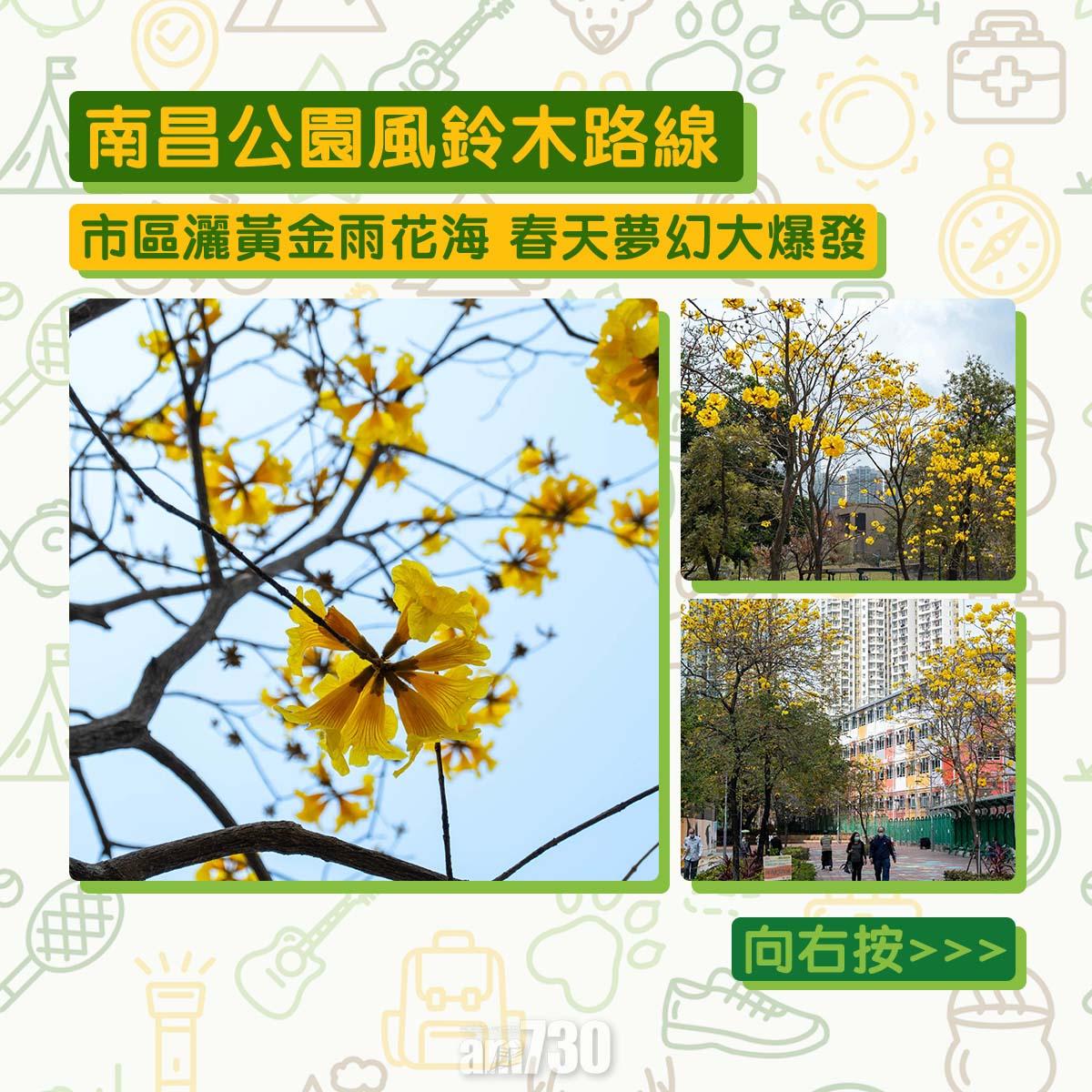 每年3-4月是風鈴木黃花盛開時期,南昌公園都會開滿一片黃色花海。詳細按此