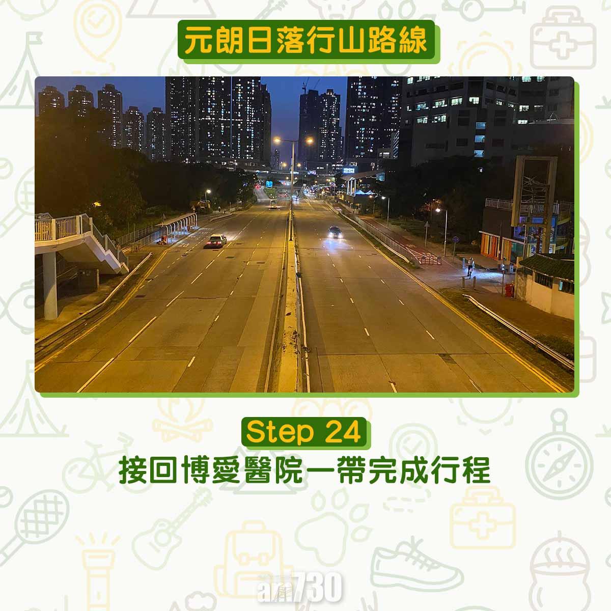 元朗站→山貝路→橫水渡→婚紗橋→南生圍路→博愛醫院