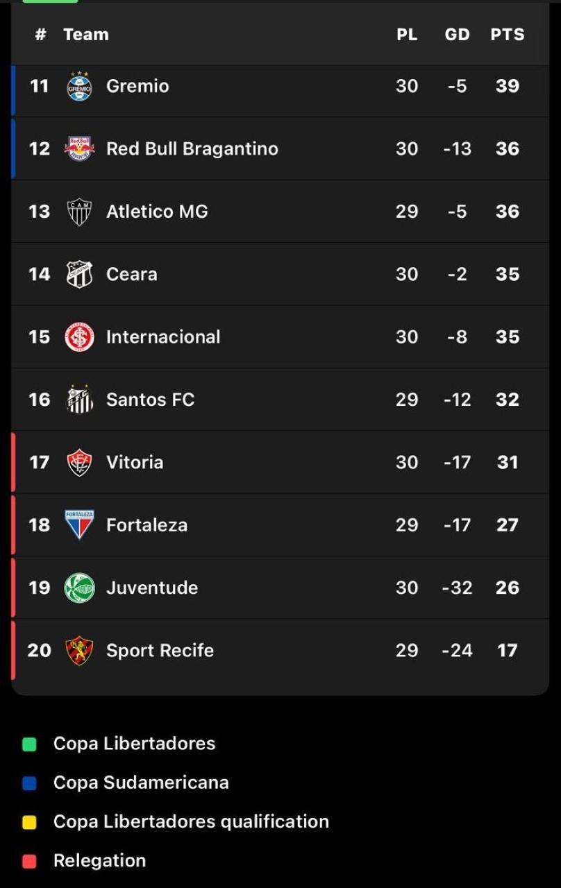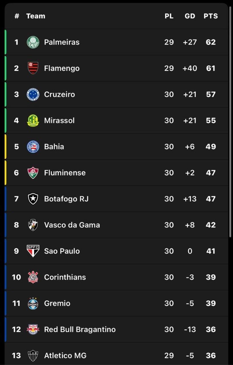 返回 體育 2025-10-30 13:31:00 巴甲30輪比賽喪炒20名領隊 僅4隊信任教練 分享: 巴拉干天奴紅牛以0比3不敵華斯高之後,炒了領隊施巴(Fernando Seabra),成為巴甲今季第20名被炒主帥。 英超今季已有3名領隊被炒魷,球迷以為這已是很多嗎?錯了,有一個國家的頂級聯賽更離譜。今季巴西甲組聯賽在30輪比賽,已經出現20次領隊更換。20支球隊之中,有16隊至少換過一次教練,當中更有球隊一換再換。 最新一次炒人發生在周一,巴拉干天奴紅牛以0:3不敵華斯高之後,炒了領隊施巴(Fernando Seabra)。 榜首彭美拉斯「從一而終」 到目前為止,只有法林明高、彭美拉斯、哥連泰斯及巴希亞這4隊,由同一位教練從開季執教至今。 原文刊登於 Yahoo 體育