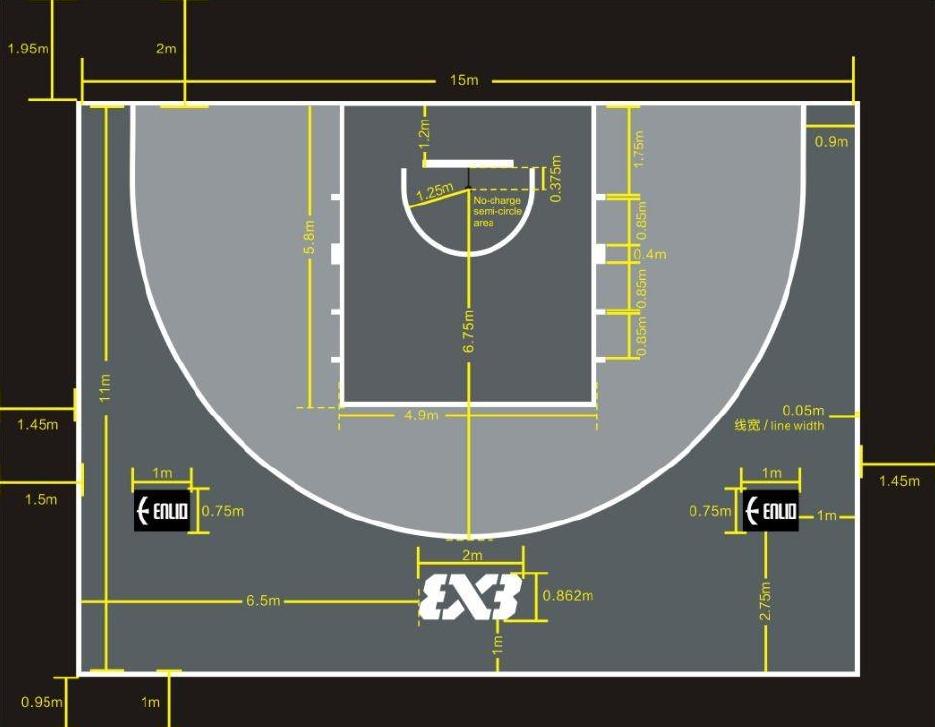 FIBA官方3人籃球場地規格為11米長、15米闊。