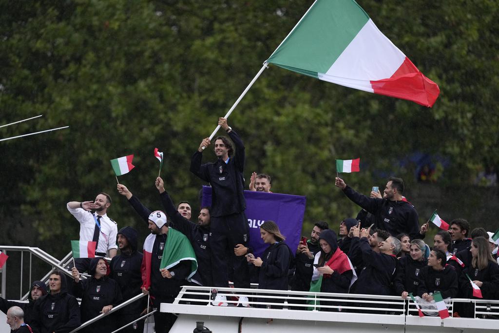譚貝利是意大利在開幕禮的持旗手。(美聯社)
