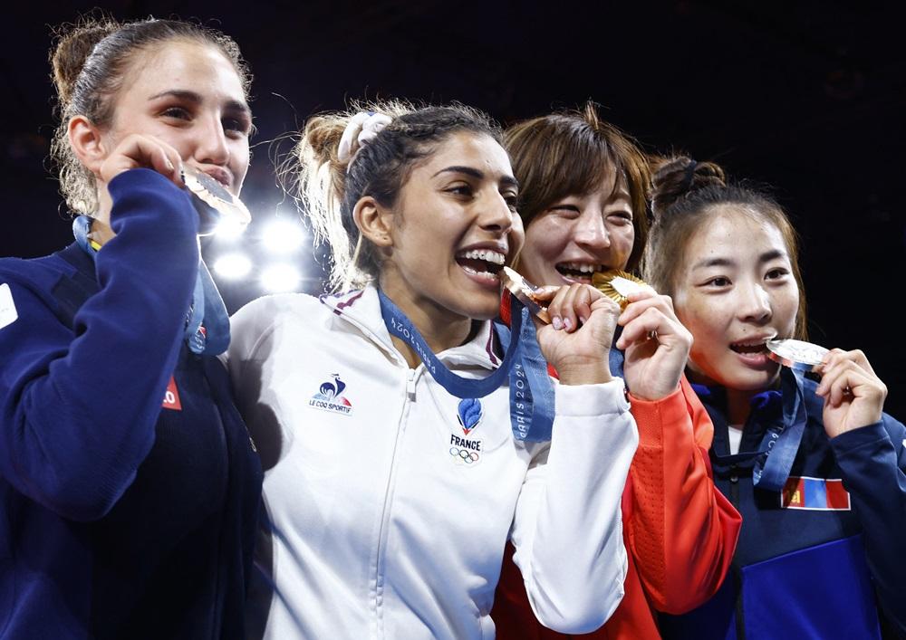 日本巴黎奧運首金得主角田夏實。(美聯社)