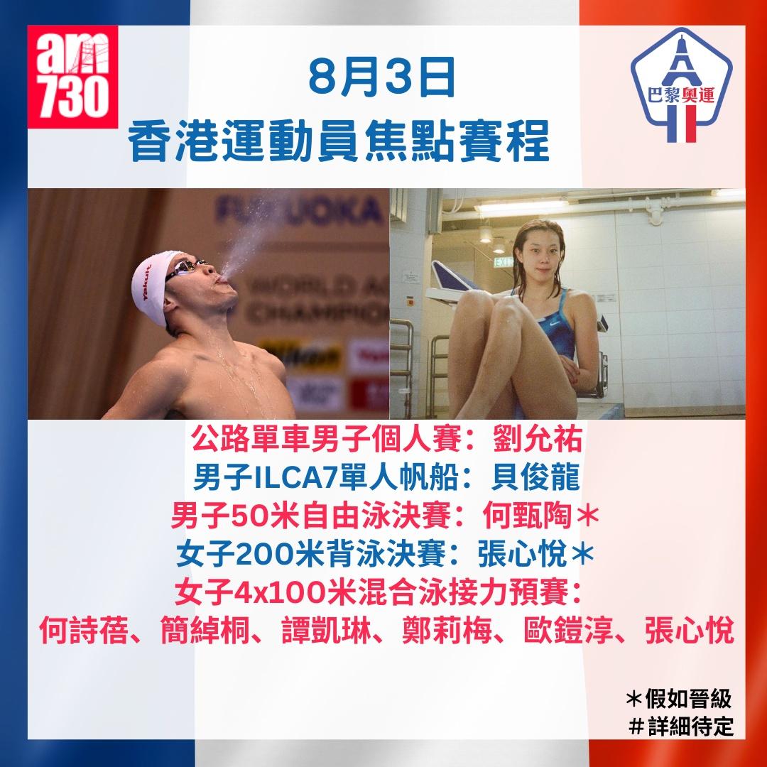 巴黎奧運|香港運動員名單及焦點賽事一覽 本地4電視台免費直播
