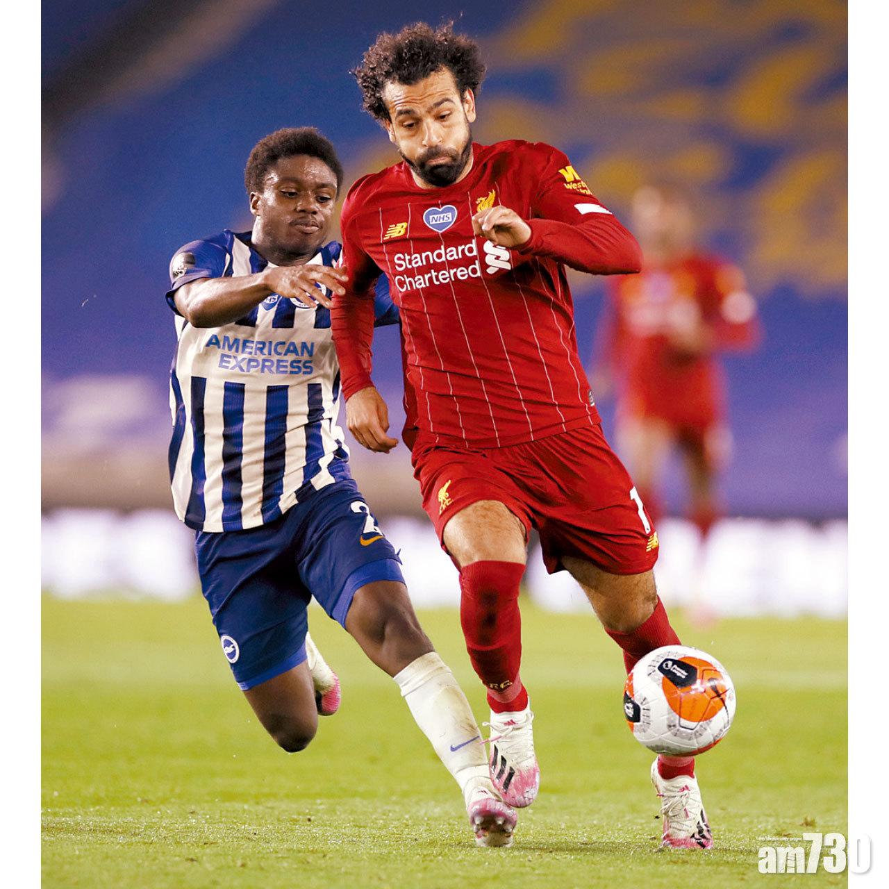 英超冠軍利物浦藉著穆罕默德沙拿梅開二度及隊長佐敦軒達臣建功,作客以3比1擊敗白禮頓,成為英超歷來最快單季獲30場勝仗的球隊,沙拿則成為紅軍史上最快參與100個英超入球的球員。