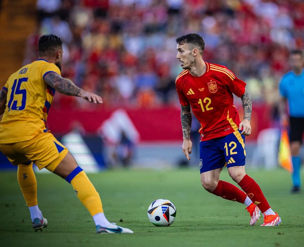 至於西班牙同樣與鄰近的小國安道爾對賽,球隊上半場僅在24分鐘由艾約斯佩雷斯(Ayoze Perez)建功領先一球。不過下半場入替的奧耶沙巴爾(Mikel Oyarzabal)盡顯功架,先在53分鐘為「狂牛軍團」拉開比數,而他之後在66及73分鐘都取得入球,在20分鐘內完成了帽子戲法,再加上費倫托利斯(Ferran Torres)在81分鐘建功,西班牙最終輕取安道爾5:0。