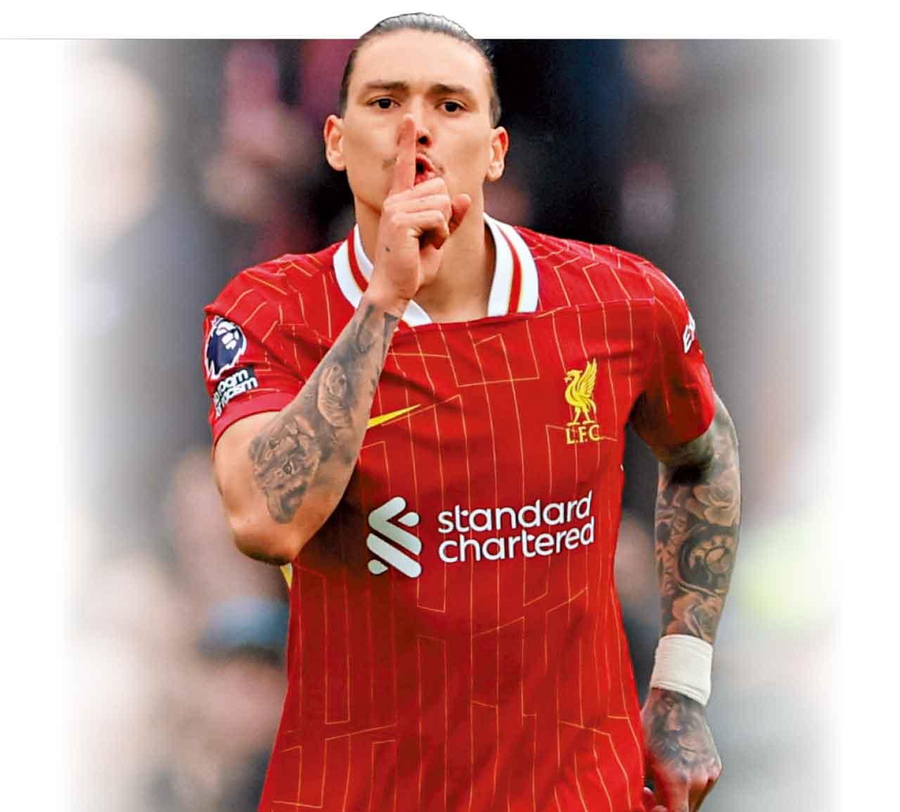 紅軍的旺氣未停止,上仗聯賽先落後下,又憑鋒將穆罕默德沙拿入2球12碼,反勝包尾的修咸頓3比1,已以15分拋離少踢1場的次席阿仙奴,封王英超指日可待。就算他們後顧周日英聯盃決賽,今夜必然可放開懷抱跟對手鬥攻,並改由轉旺的烏拉圭箭頭達雲紐尼斯掛帥。
