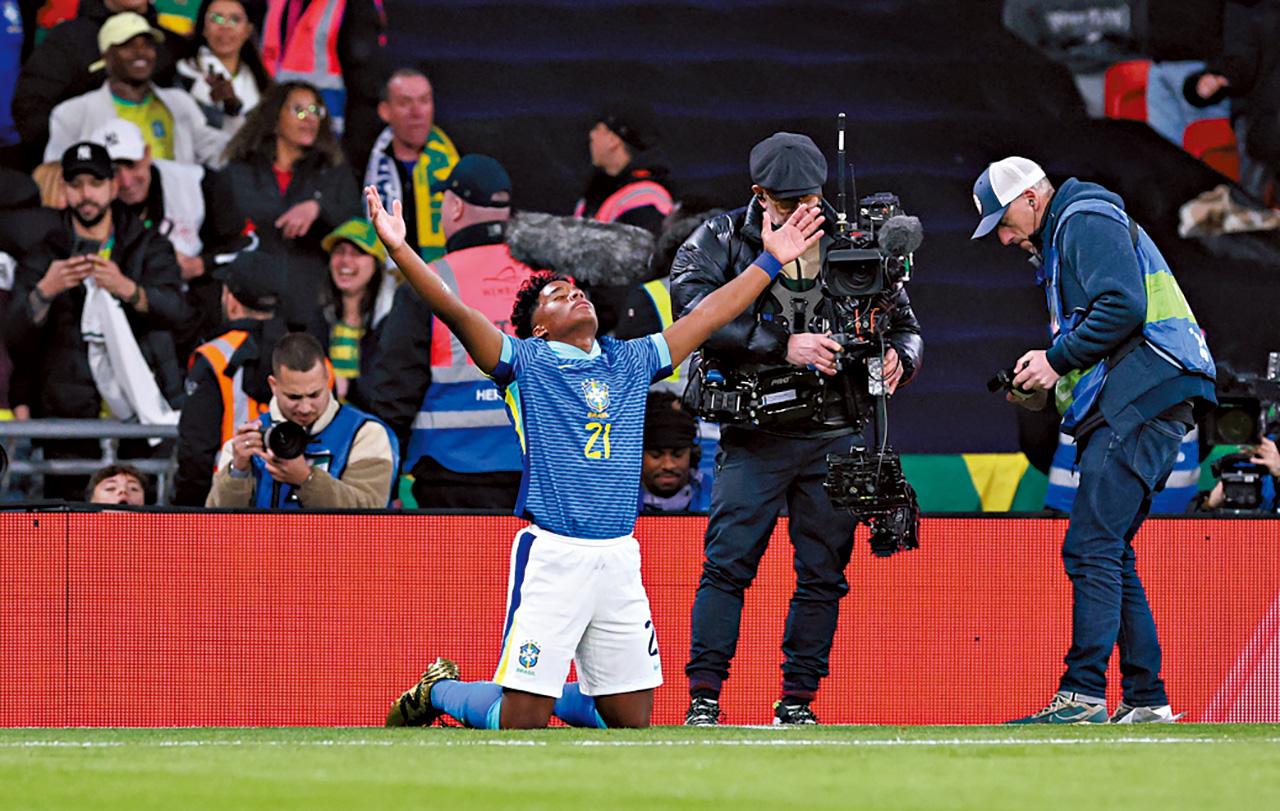「森巴兵團」上仗友賽墨西哥,憑富咸的安達斯彭利拿、阿仙奴的加比爾馬天尼利,以及即將加盟皇馬的超新星安迪歷補時建奇功,在美國中立場3比2險勝對手;繼前戰3比3賽和西班牙後,再次以入球騷娛眾。年僅17歲的安迪歷,繼鬥英格蘭一箭定江山、鬥西班牙又有士哥後,連續3場國際賽入波,潛力無限,今場又可表演射術。