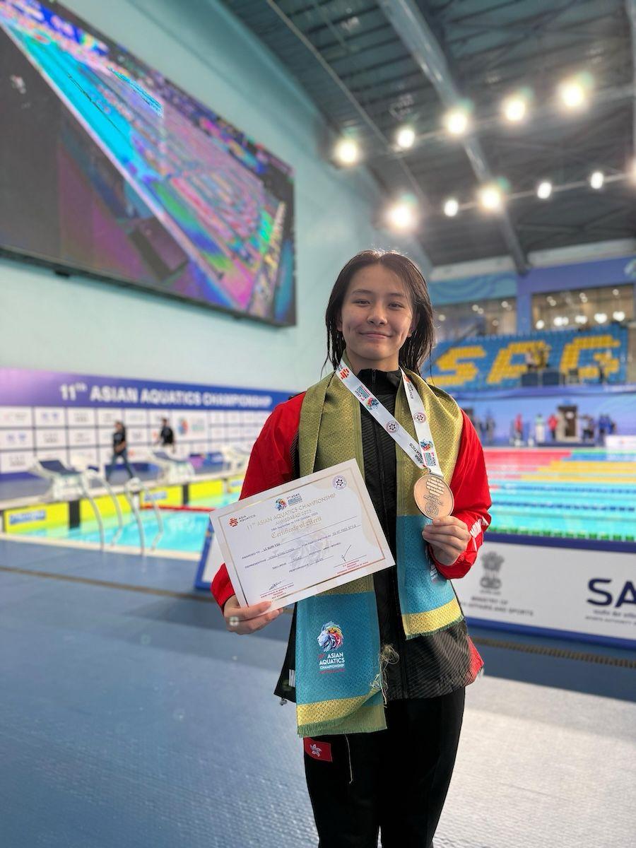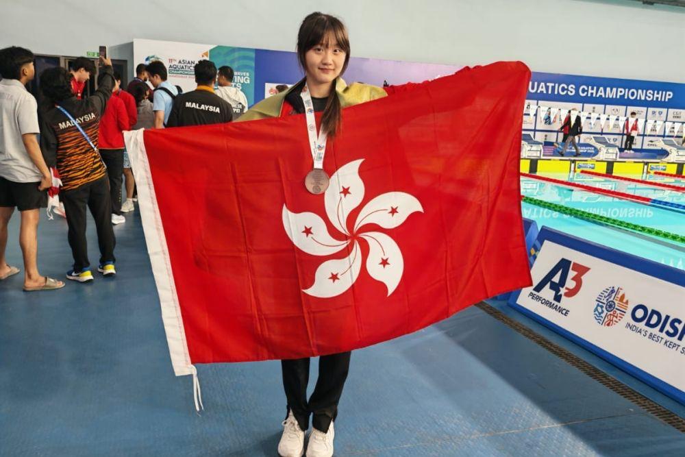 2025亞洲游泳錦標賽今日(9月29日)續假印度亞美達巴德上演次天賽事,港將再傳捷報,香港游泳隊再添1金2銅1銅,當中文薈喬及張穎怡包辦了女子50米蛙泳金銀牌。至於跳水代表王子依則於女子1米板取得突破,僅次中國選手名列第3,摘下銅牌。