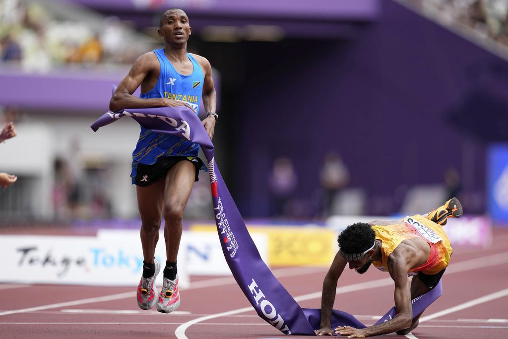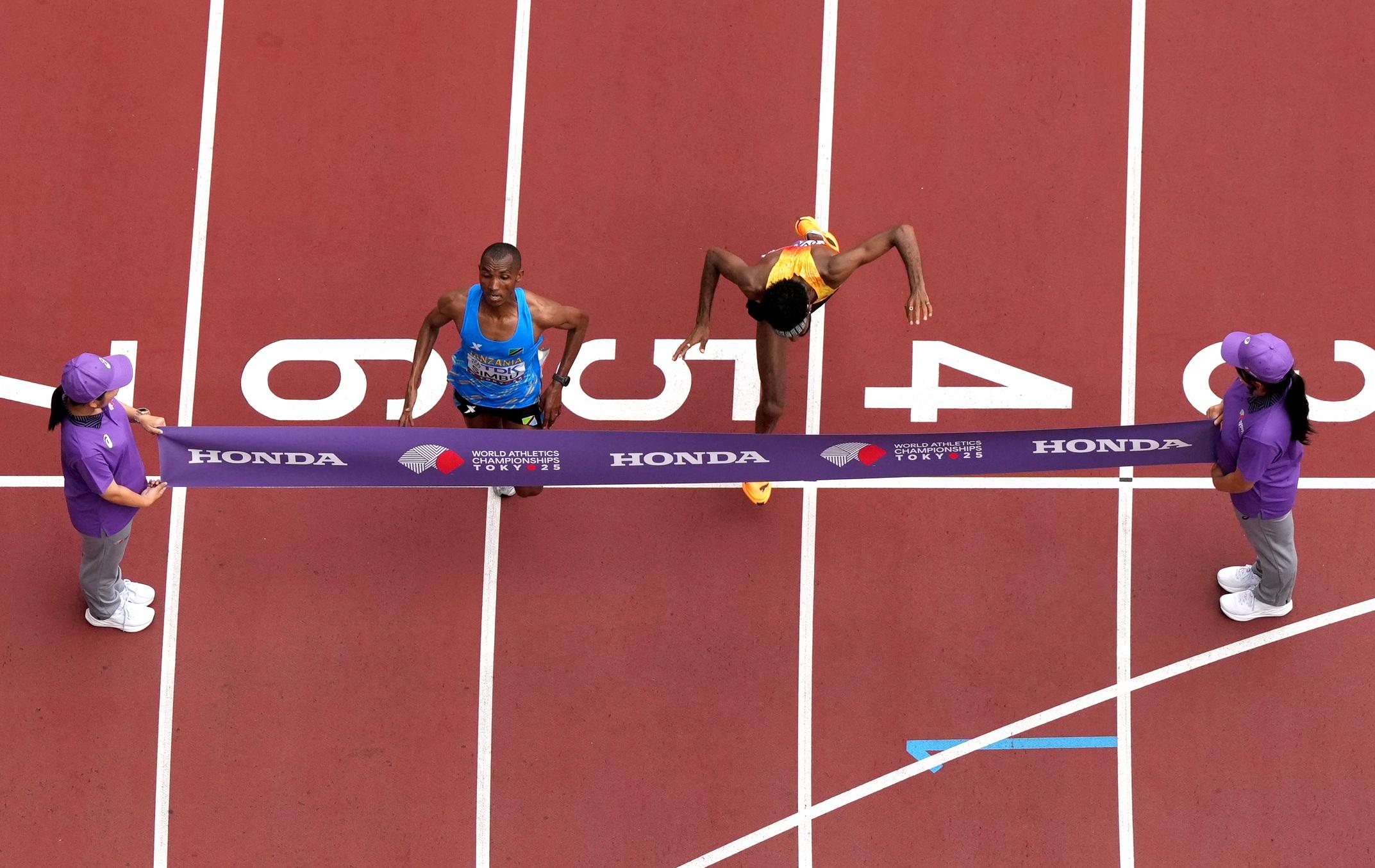 在日本東京進行的世界田徑錦標賽,今日(15日)進入第3個比賽日。進行了男子馬拉松的比賽,並出現了罕見一幕,德國跑手的比度斯(Amanal Petros)與坦桑尼亞的森保(Alphonce Simbu)在最終鬥到最後,雙方以幾乎相同時間衝線,最後要以「影相」來斷定冠軍,最終森保以0.03秒之差,力壓比度斯贏得冠軍。