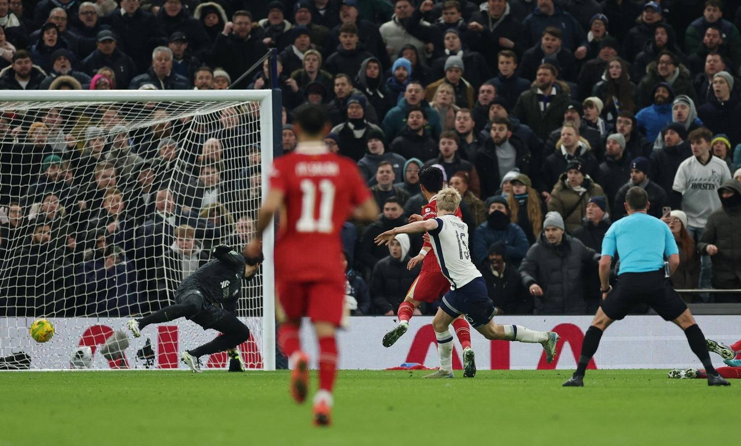 下半場熱刺先有一個破關的機會,蘇蘭基(Dominic Solanke)接應隊友的長斜線,入楔禁區單刀射入。不過視像助理裁判(VAR)指蘇蘭基處於越位,令入球無效,而這也是英格蘭球場內首次有球證公開解釋VAR裁決。不過熱刺的入球還是在86分鐘出現,蘇蘭基再接應隊友長傳,他禁區轉身後,將球橫傳後上的比治維,由這位18歲中場射入,令熱刺取得領先。之後紅軍無法追平下,熱刺首回合以1:0領先,次回合輪到利物浦主場。