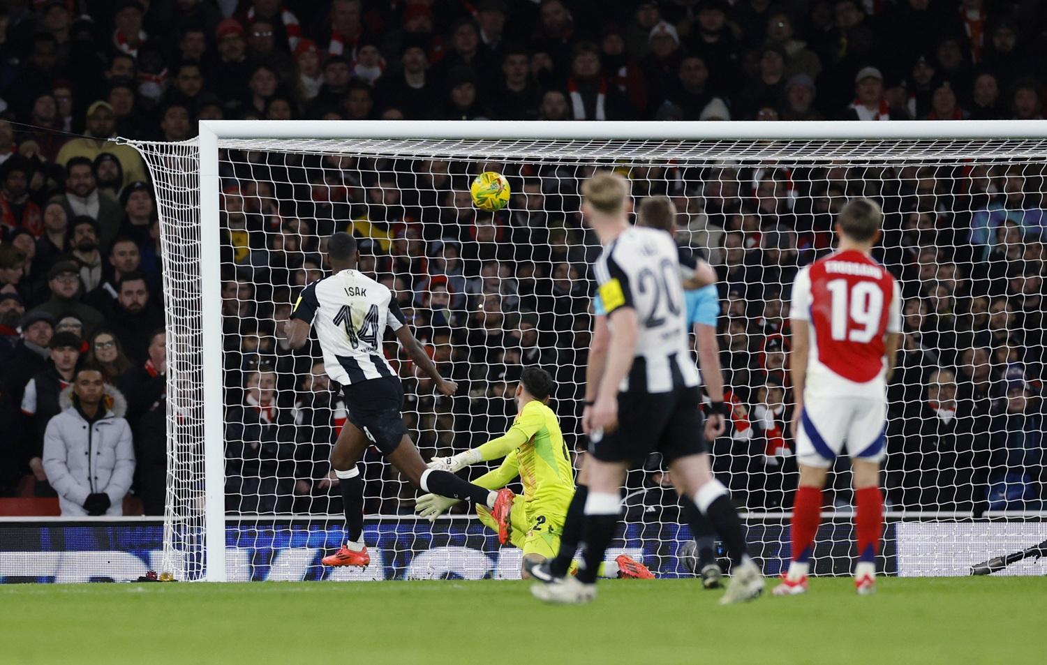 在前季打入決賽但不敵由滕哈格(Erik ten Hag)領軍的曼聯,紐卡素今季再入四強,面對另一強敵的阿仙奴。上半場兵工廠主場有不少的機會,當中包括加比爾馬天尼利(Gabriel Martinelli)的射門中柱彈出。力保不失之後,喜鵲38分鐘一次的後場罰球,隊友頭槌二傳再輾轉落在阿歷山大伊沙克(Alexander Isak)面前,他把握機會輕鬆射入,這也是他在近15場的第14個入球,令紐卡素半場領先1:0。