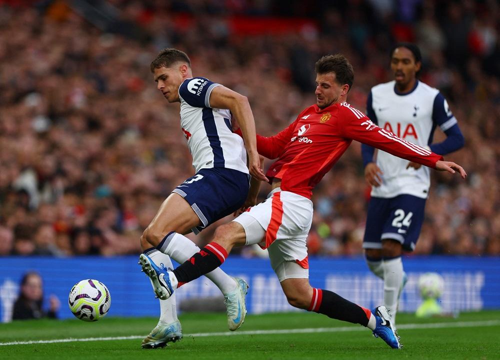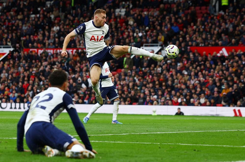 兩支今屆歐霸盃的代表對碰,對上3個賽季曼聯都保住不敗,而熱刺今場卻是缺少了隊長的孫興民。不過紅魔在開賽僅3分鐘已經失守,拉舒福特(Marcus Rashford)前場被雲迪尹(Micky van de Ven)搶走腳下球後,雲迪尹單騎直進至底線,橫傳至龍門口由比蘭莊臣(Brennan Johnson)門前輕鬆掃入領先。落後的曼聯不單沒法追平,更在42分鐘傳來惡耗,隊長般奴費南迪斯的一記粗野攔截,被球證直接紅牌驅逐,令曼聯半場少打一個兼落後一球。