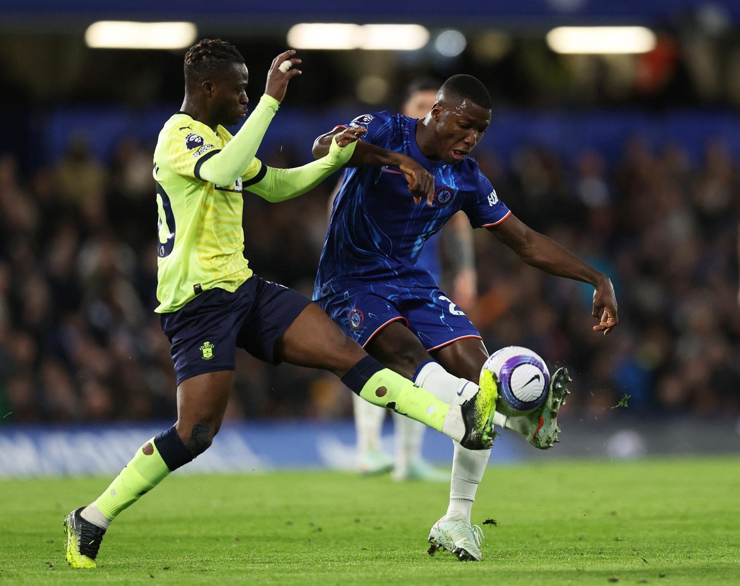 足總盃不敵白禮頓出局,藍戰士之後連續兩場聯賽再輸給白禮頓及維拉,賽前一度跌落聯賽第6名。主場面對今季仍僅得9分的修咸頓,車路士在24分鐘打破缺口,尼干古(Christopher Nkunku)角球伏兵遠柱,由隊友二傳,令他在門前把握到機會頂入領先。尼干古36分鐘轉為助攻,接應古古列拿(Marc Cucurella)傳送後,再後腳傳送隊友的柏度尼圖(Pedro Neto),禁區內勁射近柱,令車路士2:0領先。