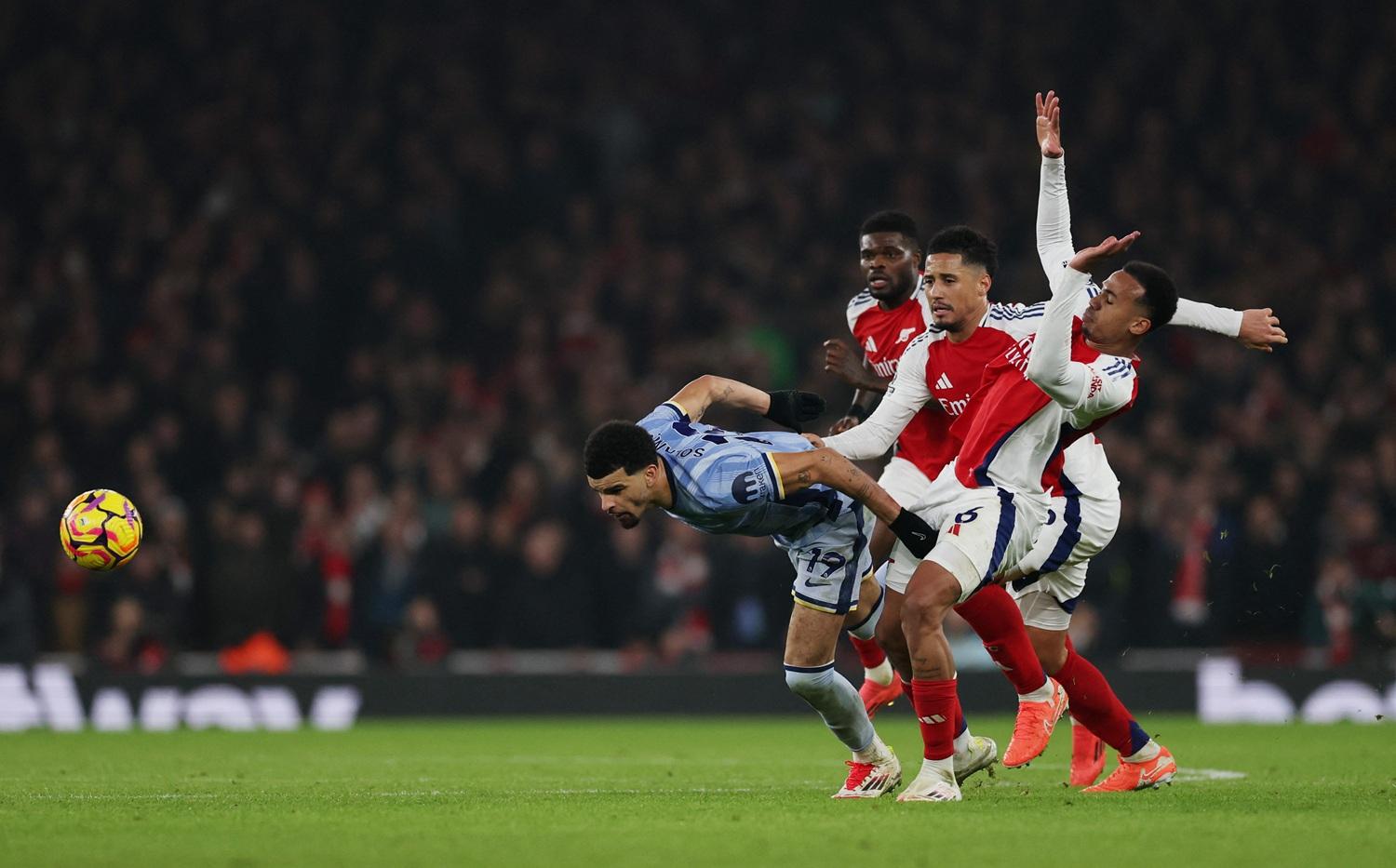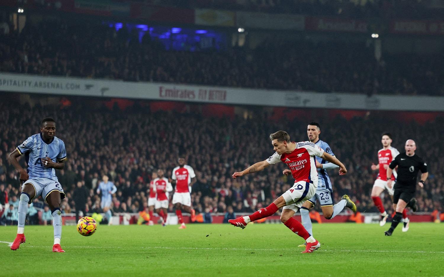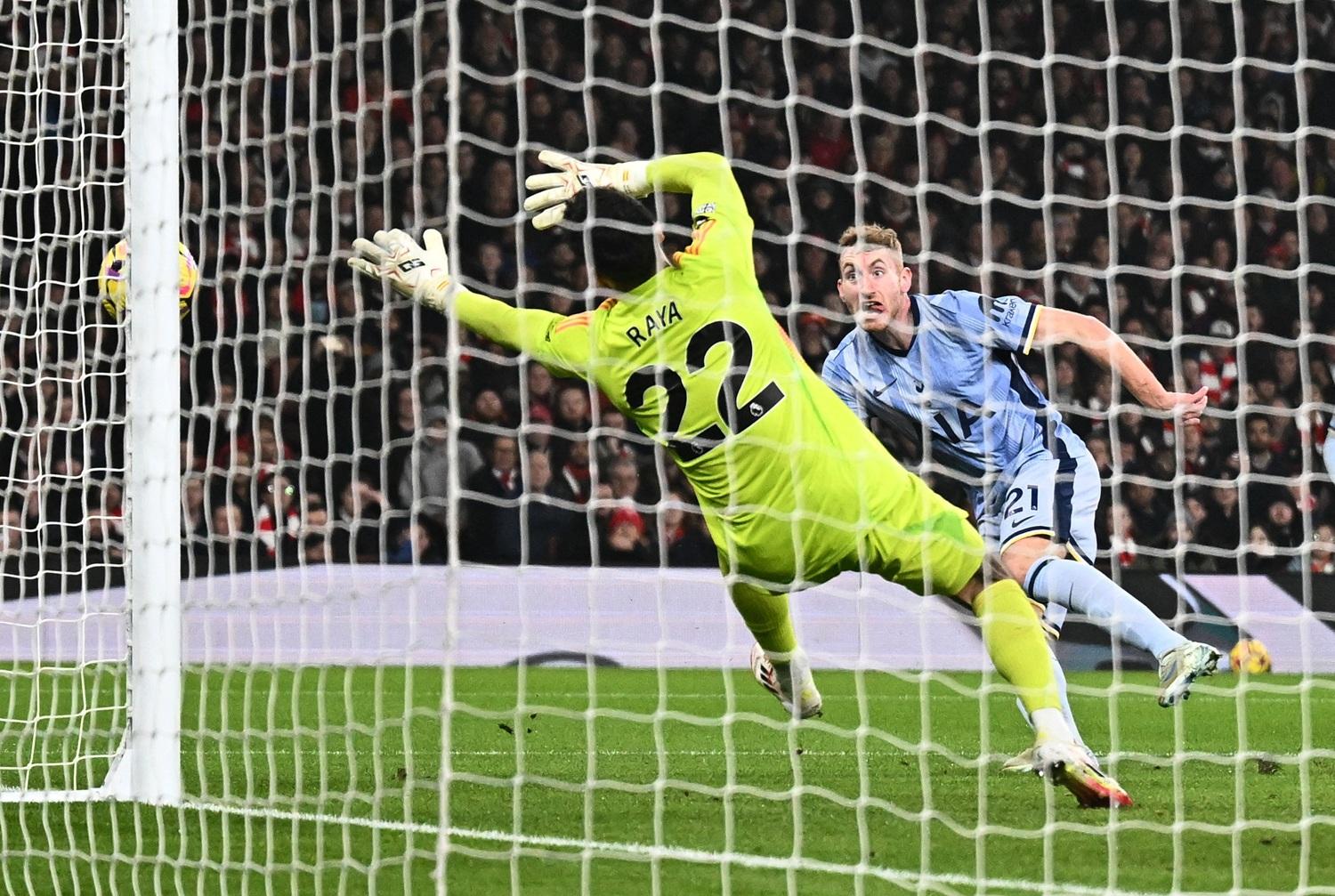 聯賽盃瀕臨出局邊沿,足總盃又被曼聯淘汰,阿仙奴距離榜首的利物浦也有4分,而且多打一場,球隊大有機會再次面對一個「四大皆空」的賽季。在這場北倫敦打吡,兵工廠先有夏維斯(Kai Havertz)剷甩對手門將的腳下球,但熱刺21歲的新門將堅斯基(Antonin Kinsky)翻身快再擒住,力保不失,而古路施夫斯基(Dejan Kulusevski)近門起腳,又被大衛拉耶(David Raya)擋出。