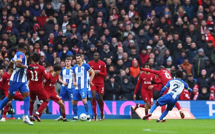 兩星期前的聯賽曾3球淨勝利物浦的白禮頓,今場的足總盃30分鐘就先失守,紅軍新秀哈維艾利洛(Harvey Elliott)接應穆罕默德沙拿(Mohamed Salah)直線,禁區為球隊建功領先。然而紅軍的領先優勢僅得9分鐘,蘭普堤(Tariq Lamptey)把握罰球解圍不遠,在禁區外勁射,省中隊友李維士鄧克(Lewis Dunk)的腳改變方向,為白禮頓完半場前追平1:1。