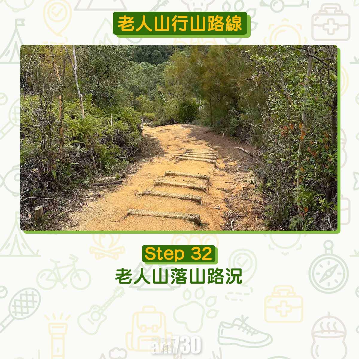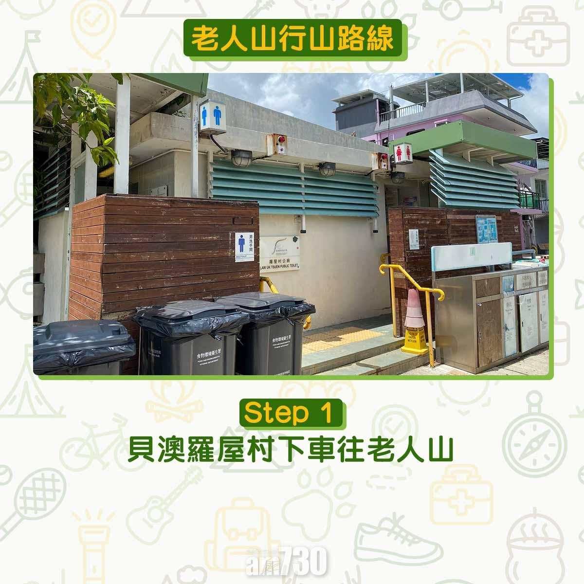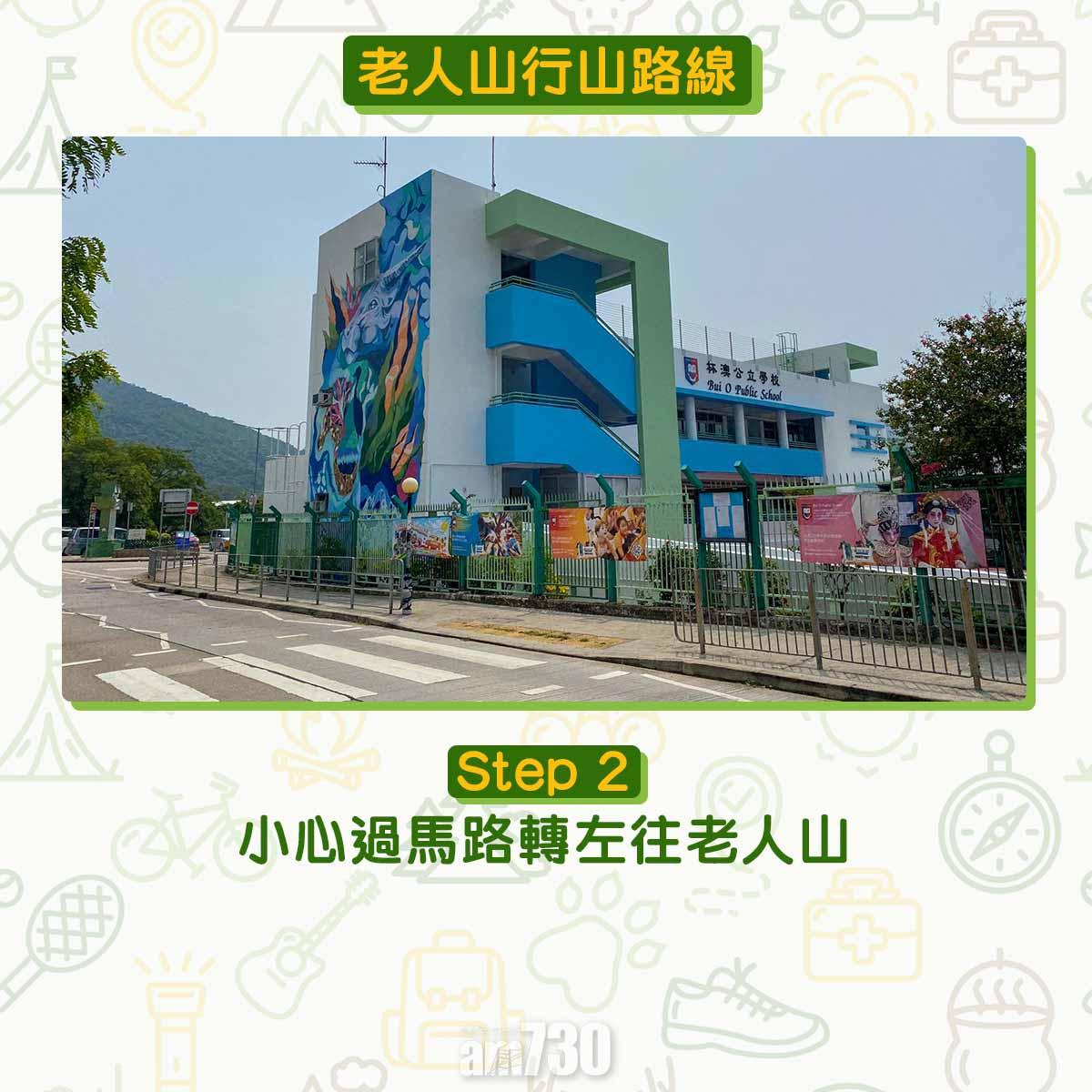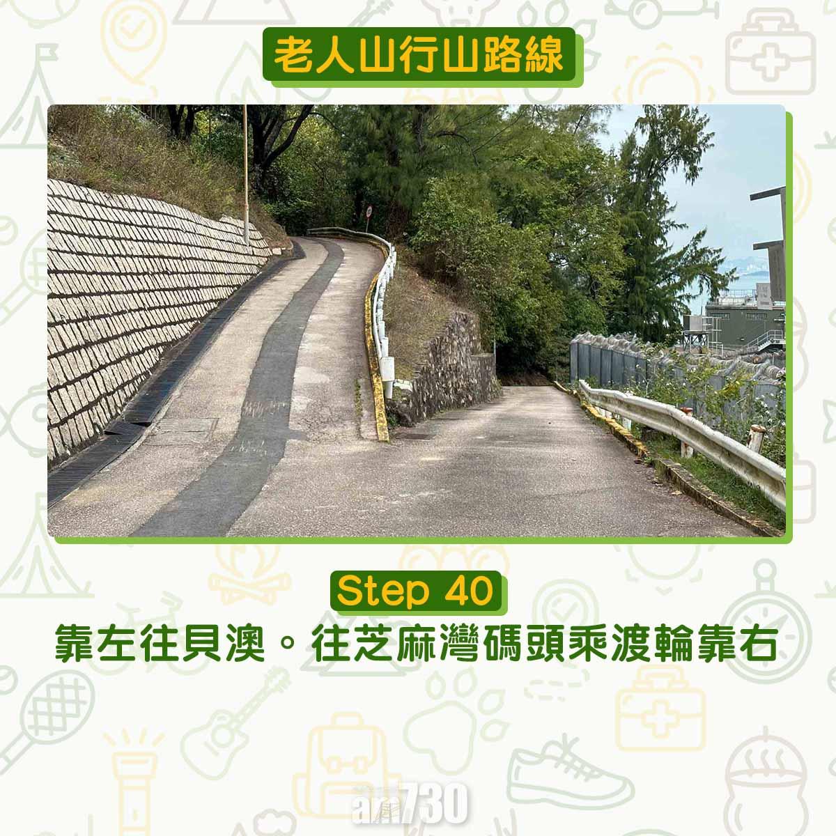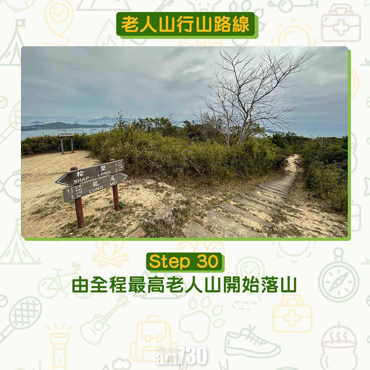 離開貝澳沙灘沿芝麻灣道上斜,見鳳凰徑12段路牌不要跟隨,右轉經芝麻灣郊遊徑牌坊登樓梯,路口標示「龍尾經老人山」才可登廟仔墩及老人山。登廟仔墩約在1公里距離上升海拔250米,除了樓梯還是樓梯。木級比踏腳位更高,需要比平常用更多力抬腿。過木級後難度增加,夾雜碎石的斜坡加上強風,約20-40分鐘登頂比想像中耐。廟仔墩是完美俯瞰貝澳的高點,邊看邊反思天然沙咀、淡水濕地、沼澤、河溪等會否永續?傳說多年前有人經過廟仔墩上的小廟,擺低香油錢誠心參拜。他後來用找續的錢買馬票中三獎,後來回到廟仔墩還神。