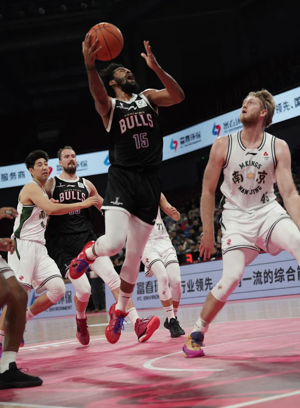 第2節,南京天之藍手感火熱,「三分雨」令香港金牛陷於苦戰,一度被拉開至22:34、落後達12分。不過球隊再次展現永不言敗的香港精神,由美臣鍾斯、厄特爾二世及阿諾斯克(E.J. Anosike)輪流撲分,打出一段12:5,成功把差距縮窄至4分,半場以43:47緊咬對手。