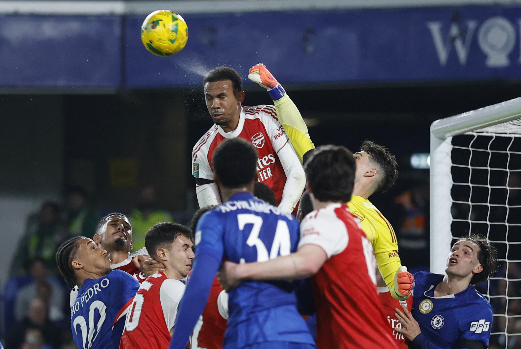 聯賽盃四強首回合,車路士因為門將羅拔山齊士(Robert Sanchez)的接連犯錯,令阿仙奴作客得以取勝,幸阿歷真度加拿祖(Alejandro Garnacho)在後備上陣為球隊梅開二度,令藍戰士首回合只落後2:3。
